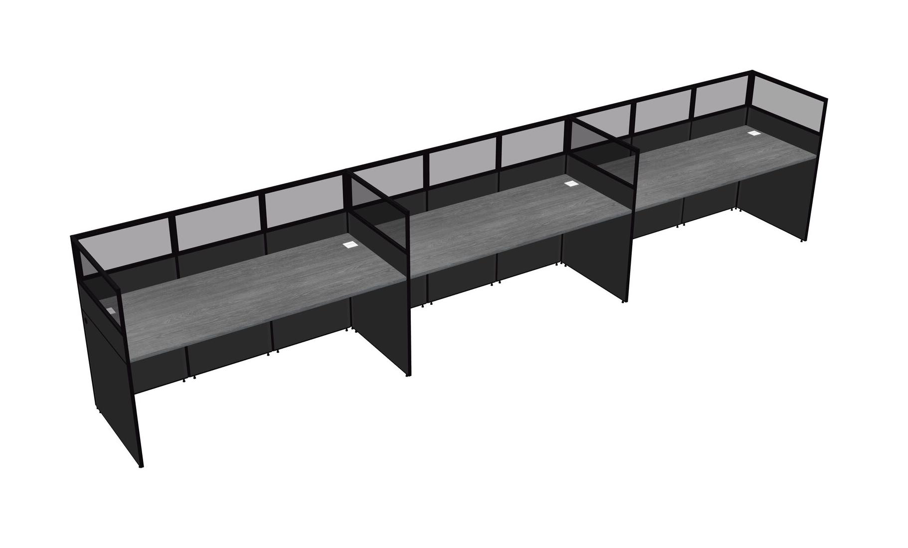 Grey Shared Rectangular Office Cubicle Panel System For 3 Persons