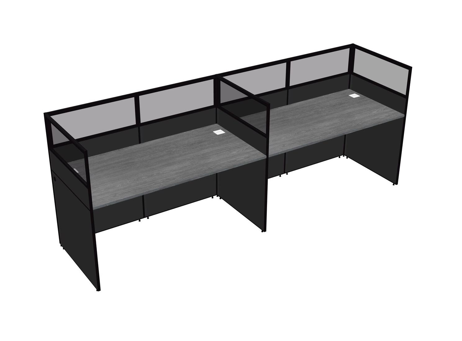 Grey Shared Rectangular Office Cubicle Panel System For 2 Persons