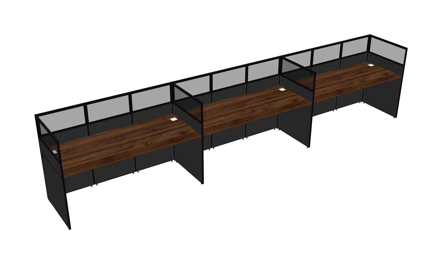 Columbia Walnut Shared Rectangular Office Cubicle Panel System For 3 Persons