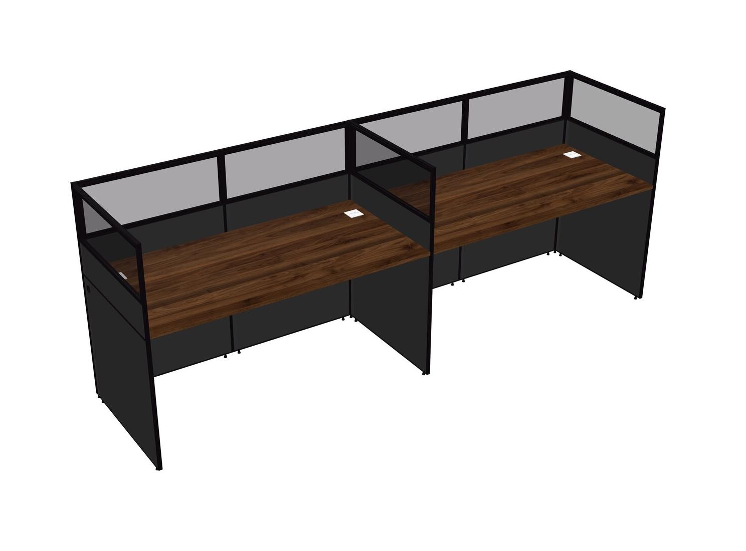 Columbia Walnut Shared Rectangular Office Cubicle Panel System For 2 Persons