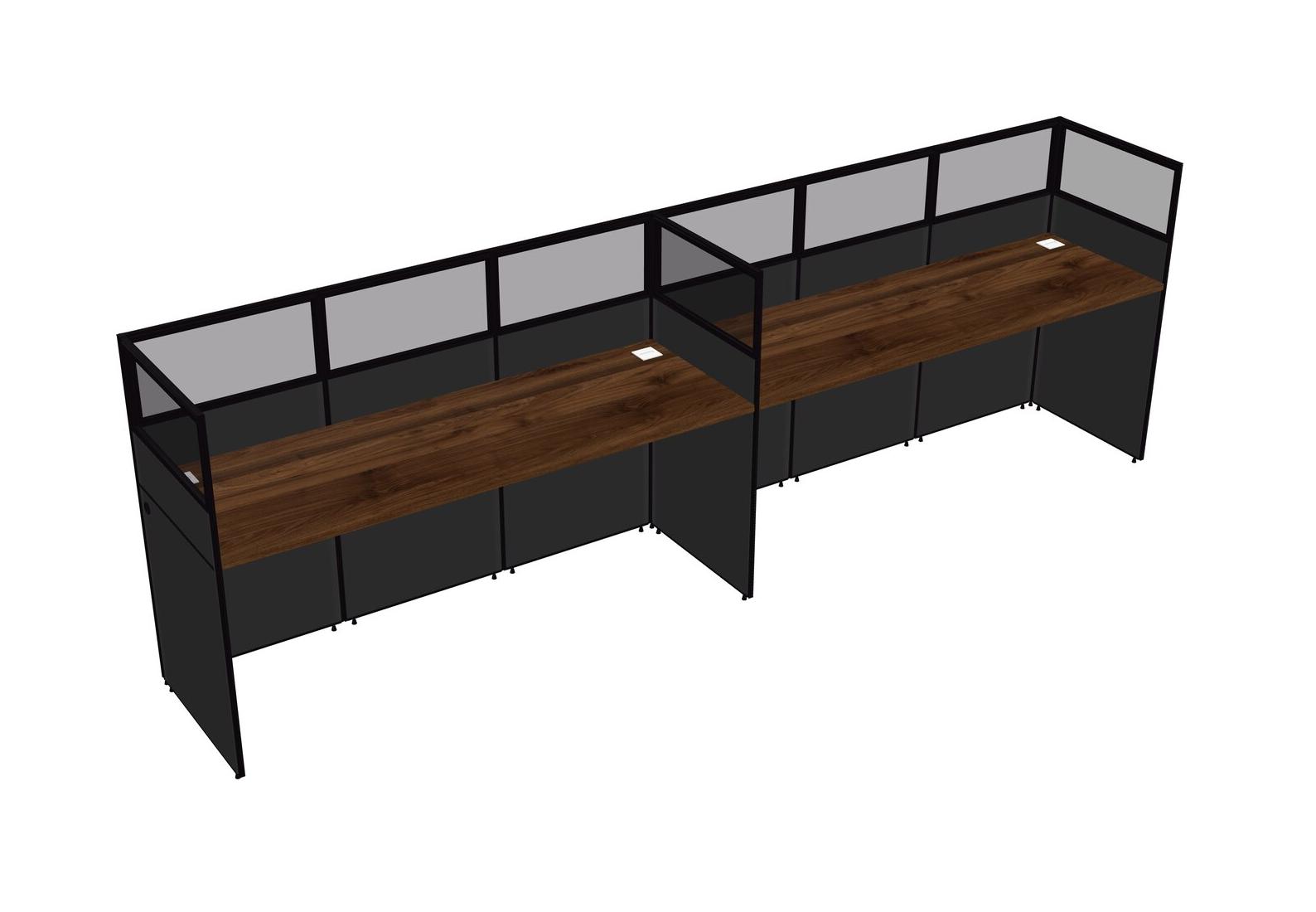 Columbia Walnut Shared Rectangular Office Cubicle Panel System For 2 Persons