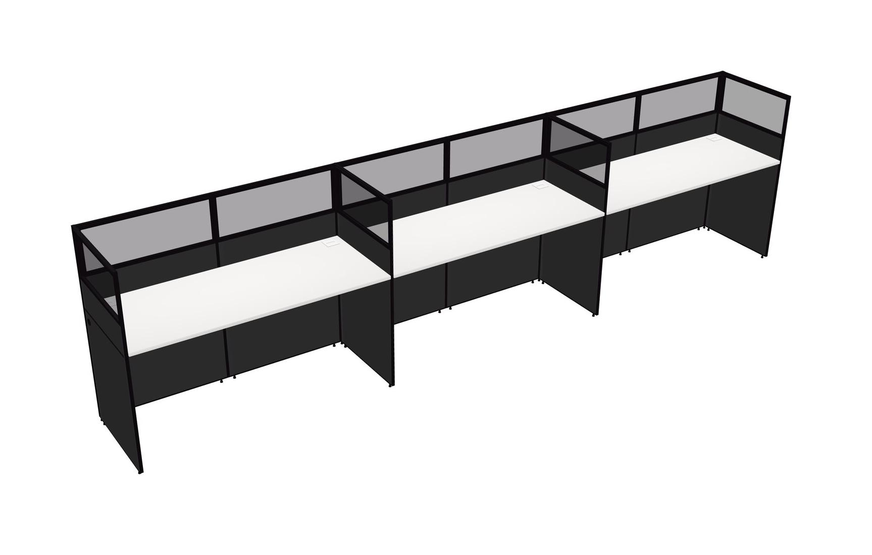 White Shared Rectangular Office Cubicle Panel System For 3 Persons