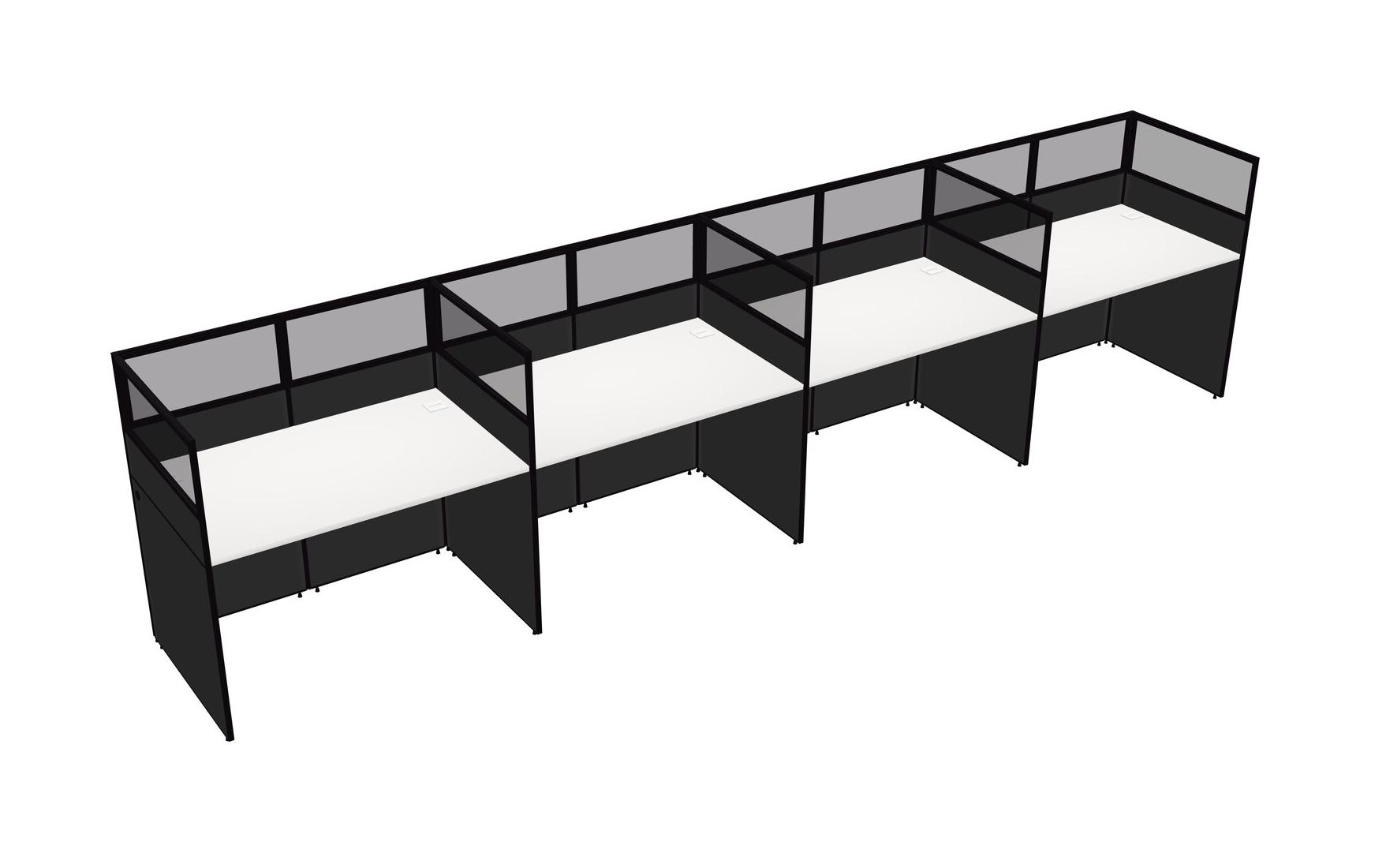 White Shared Rectangular Office Cubicle Panel System For 4 Persons