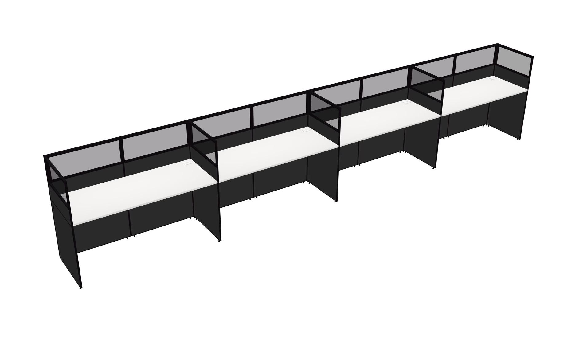 White Shared Rectangular Office Cubicle Panel System For 4 Persons