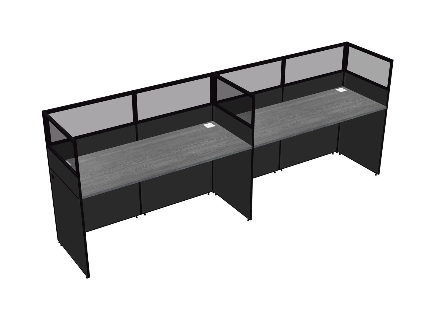 Grey Shared Rectangular Office Cubicle Panel System For 2 Persons