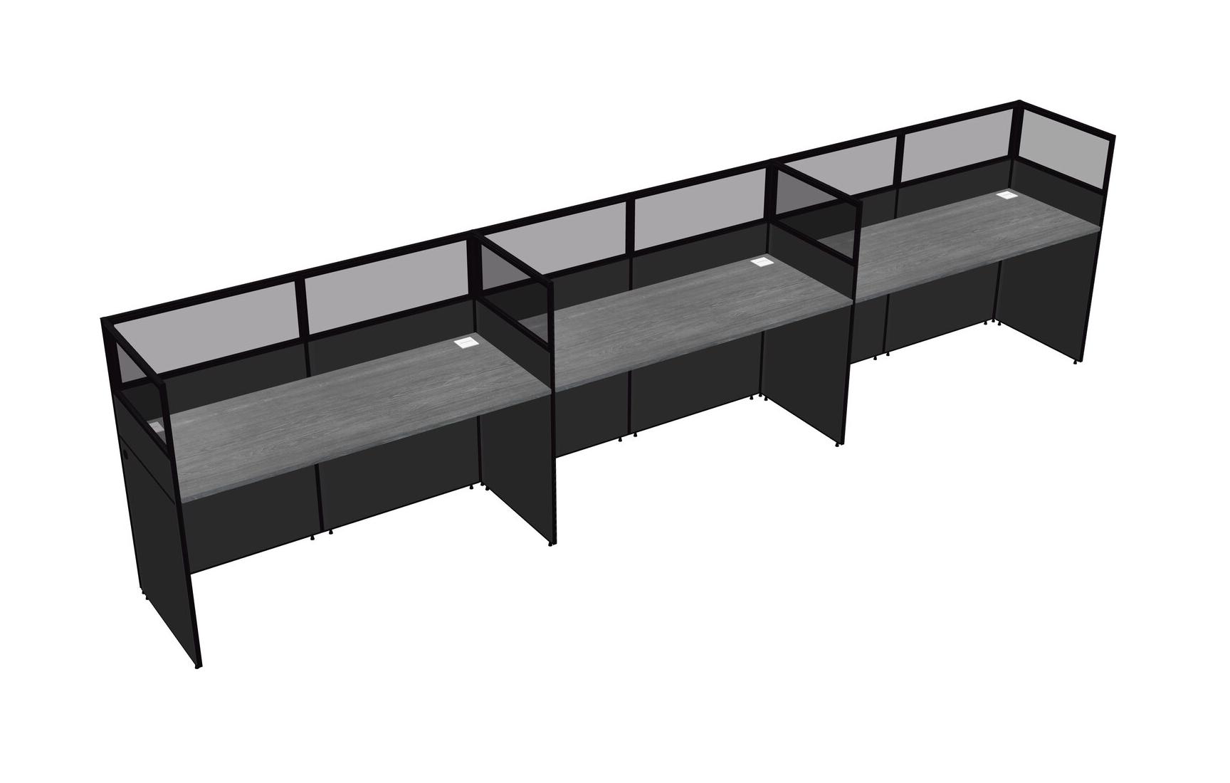 Grey Shared Rectangular Office Cubicle Panel System For 3 Persons