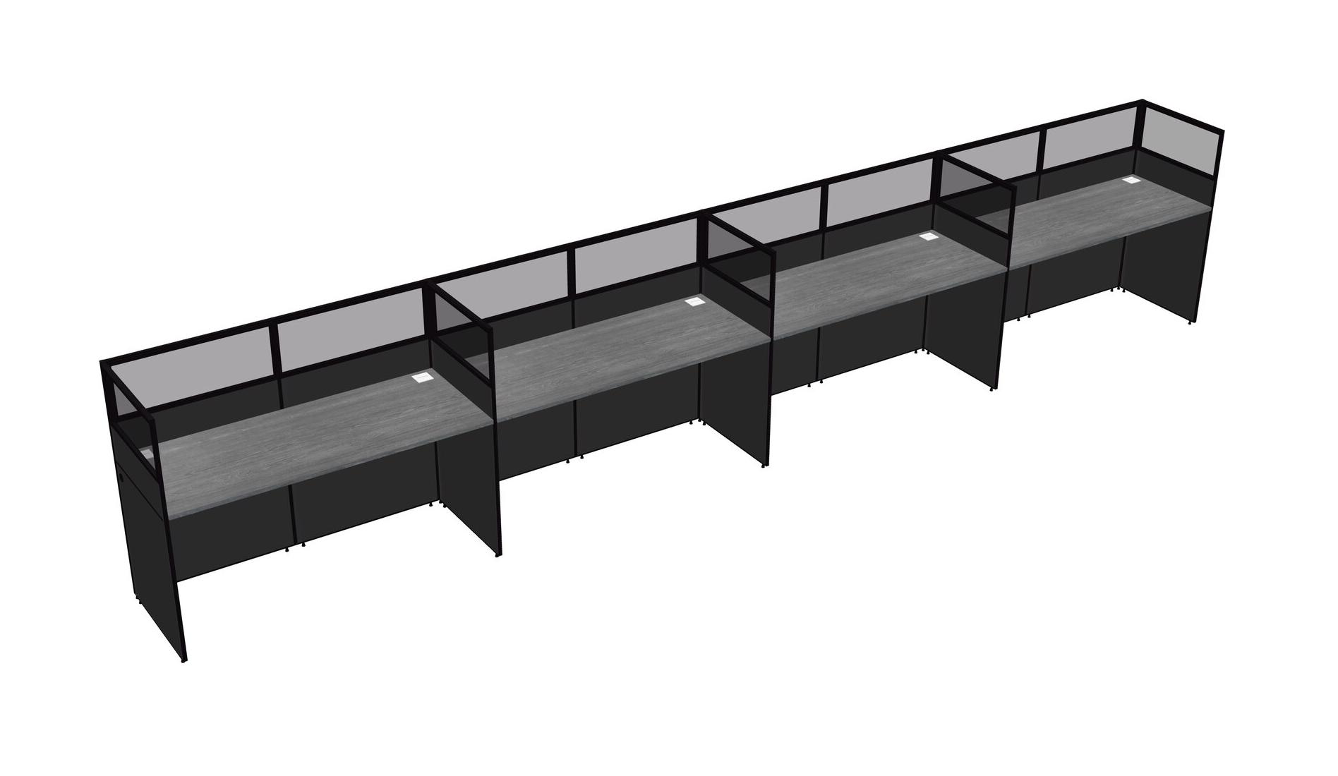 Grey Shared Rectangular Office Cubicle Panel System For 4 Persons