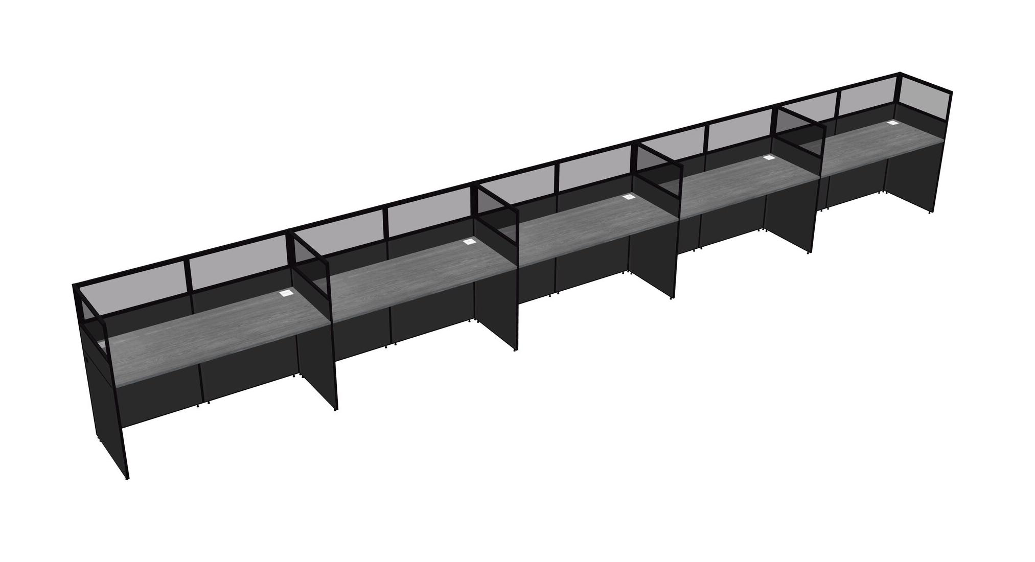 Grey Shared Rectangular Office Cubicle Panel System For 5 Persons