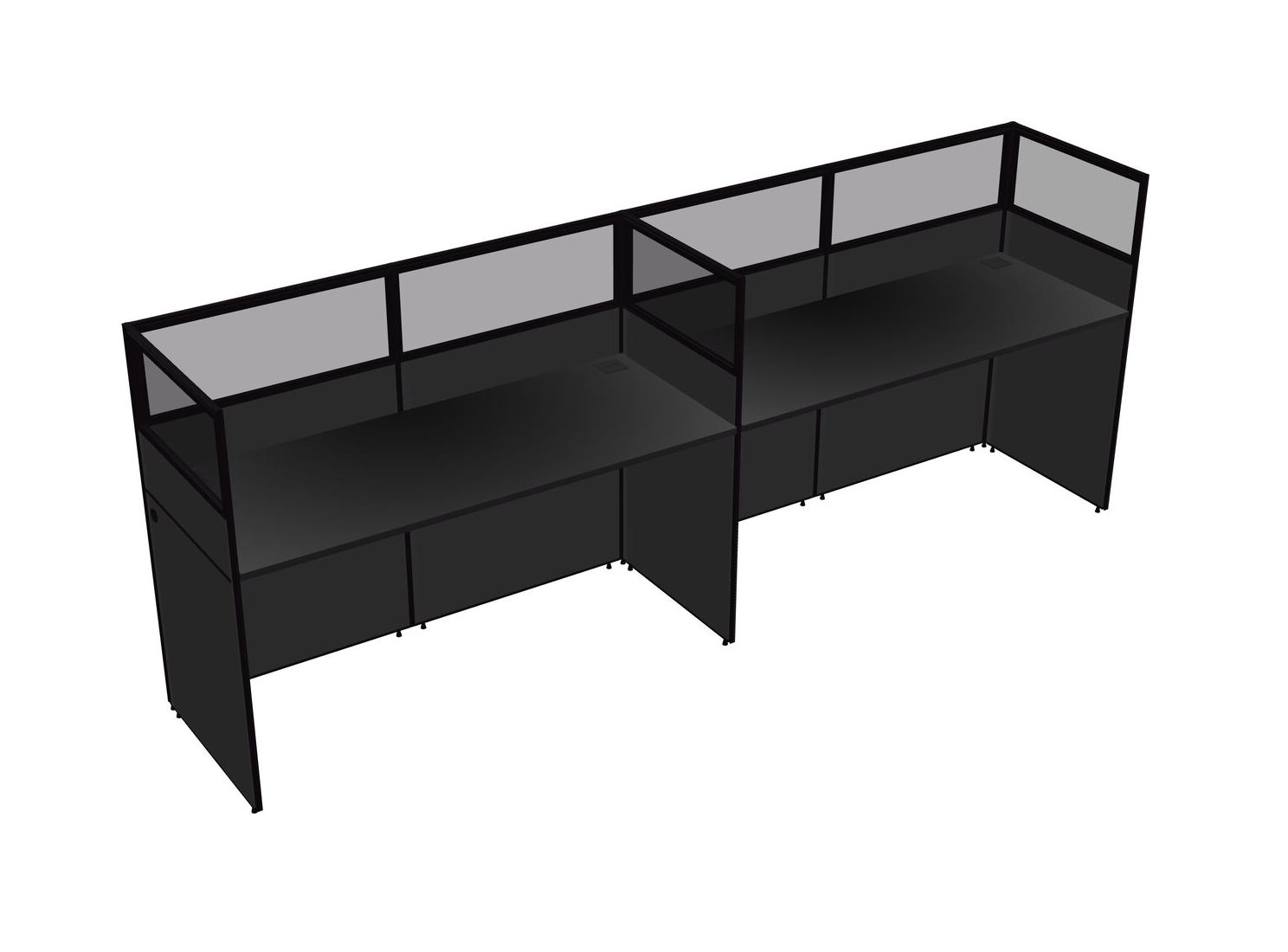 Black Shared Rectangular Office Cubicle Panel System For 2 Persons