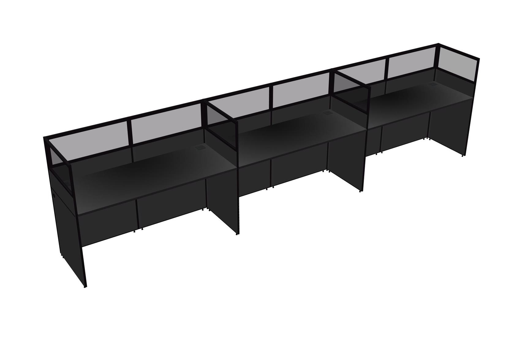 Black Shared Rectangular Office Cubicle Panel System For 3 Persons