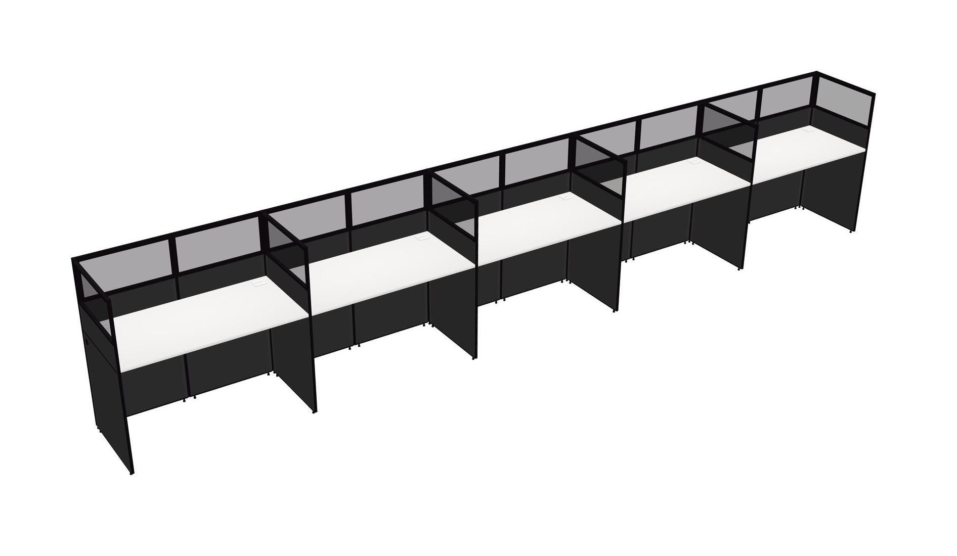 White Shared Rectangular Office Cubicle Panel System For 5 Persons