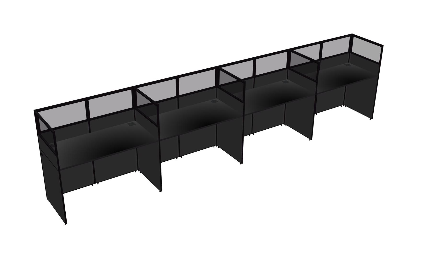 Black Shared Rectangular Office Cubicle Panel System For 4 Persons
