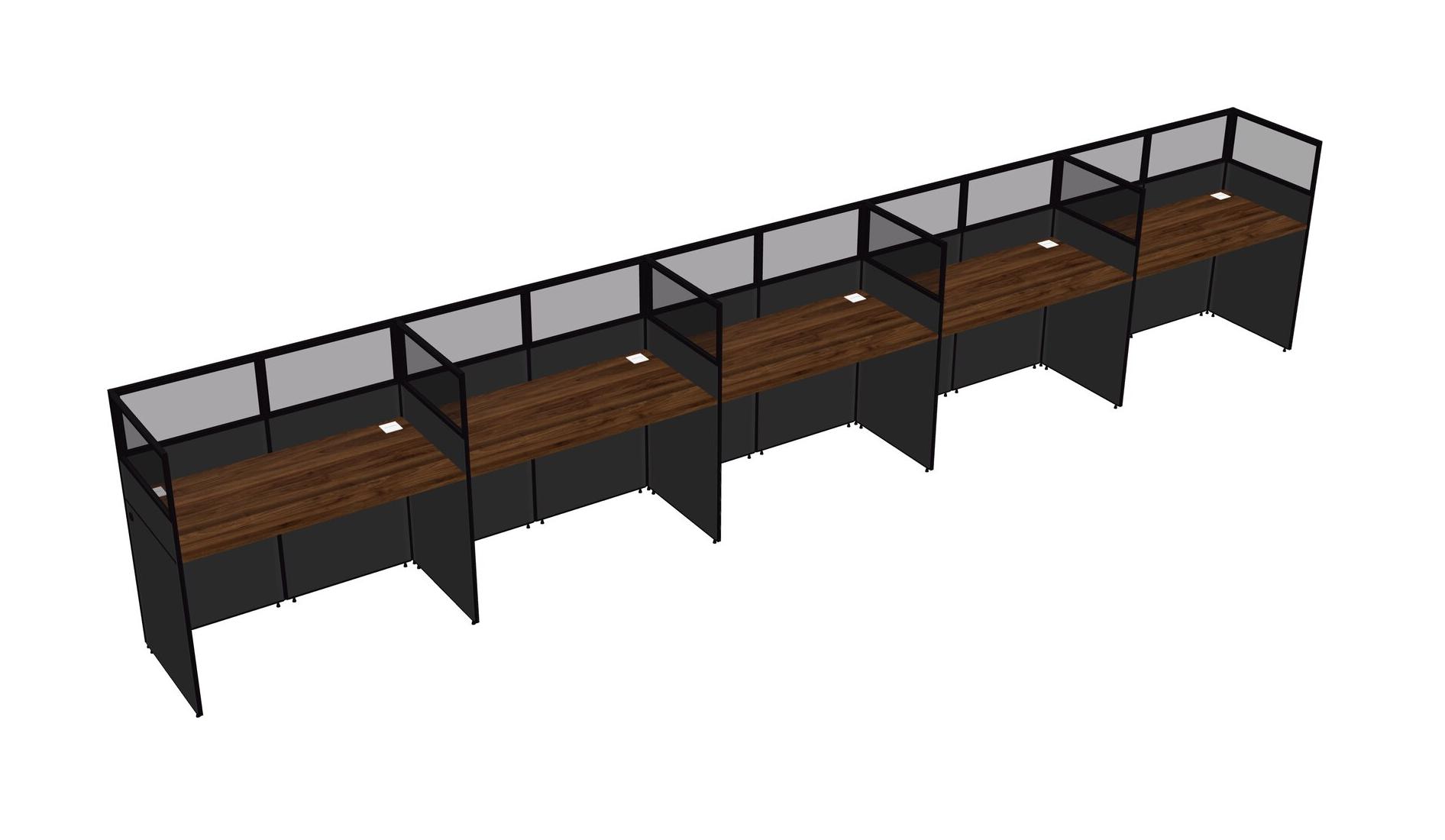 Columbia Walnut Shared Rectangular Office Cubicle Panel System For 5 Persons