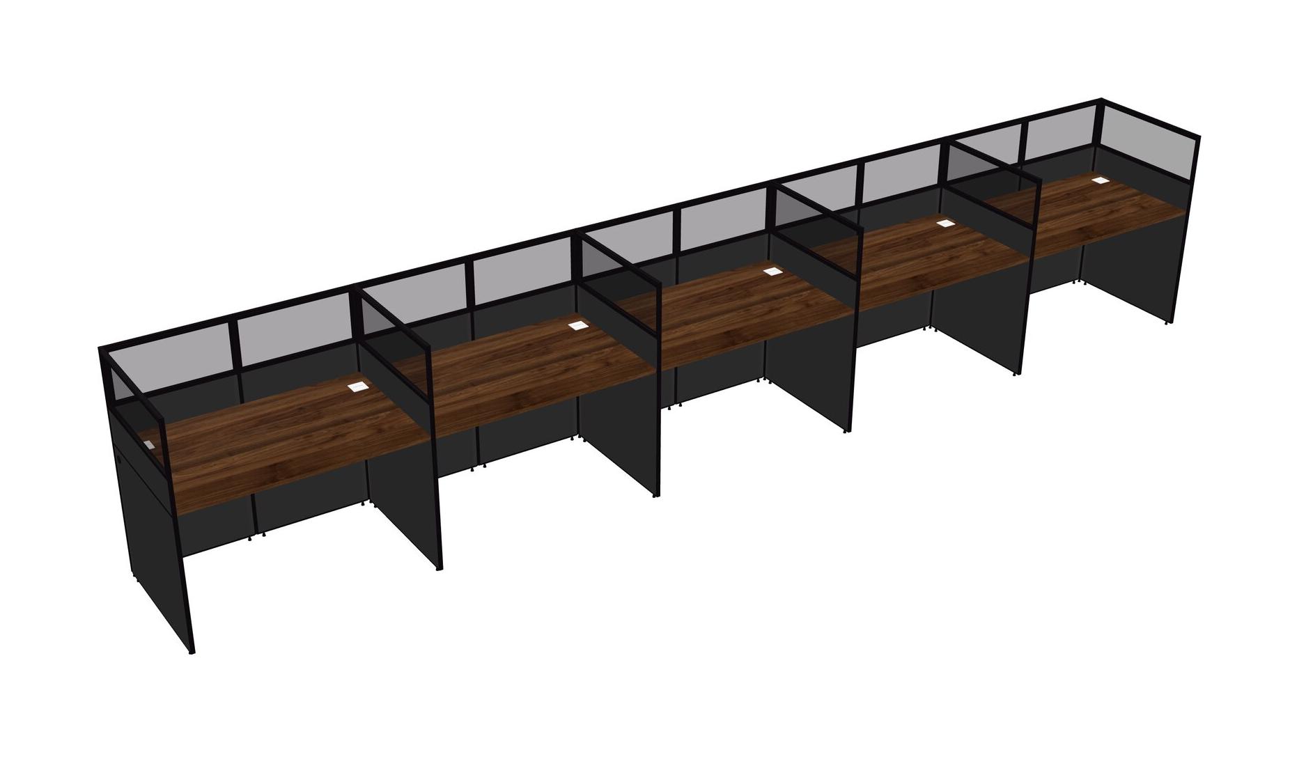 Columbia Walnut Shared Rectangular Office Cubicle Panel System For 5 Persons