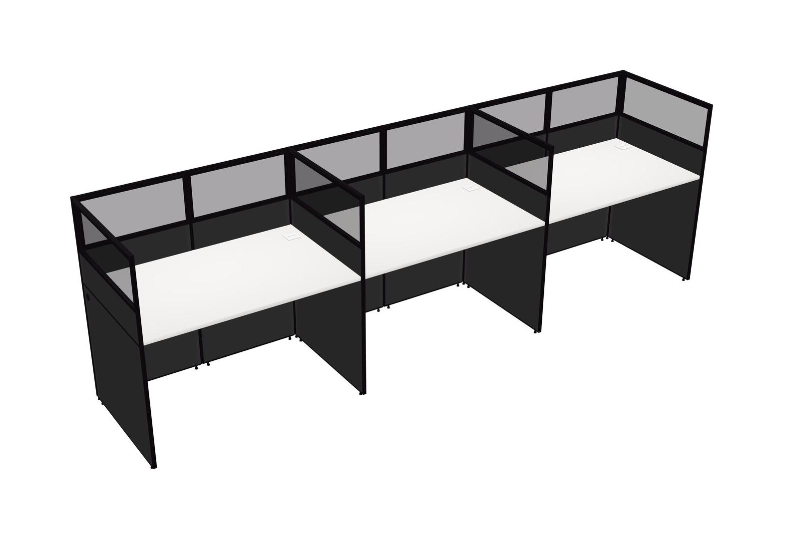 White Shared Rectangular Office Cubicle Panel System For 3 Persons