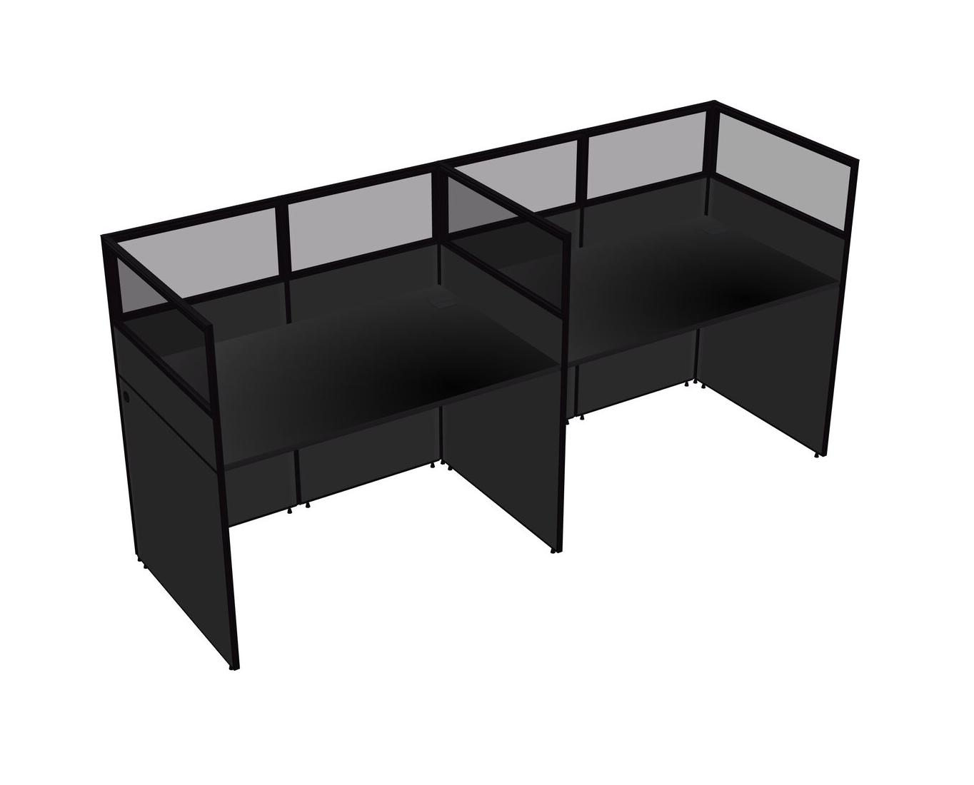 Black Shared Rectangular Office Cubicle Panel System For 2 Persons