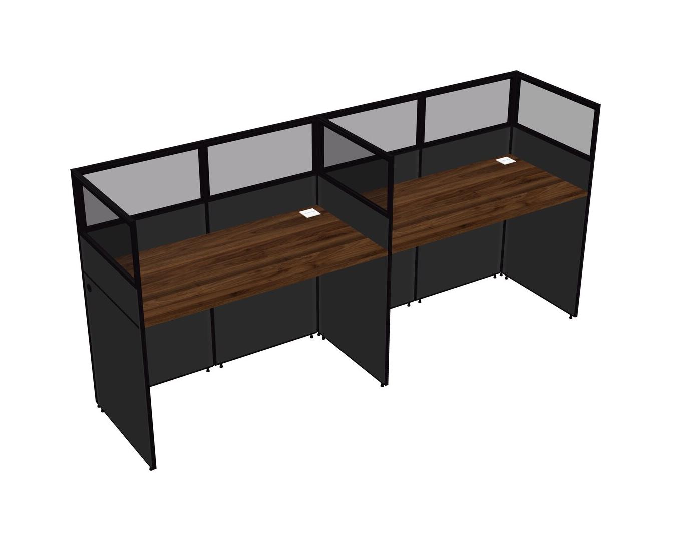 Columbia Walnut Shared Rectangular Office Cubicle Panel System For 2 Persons