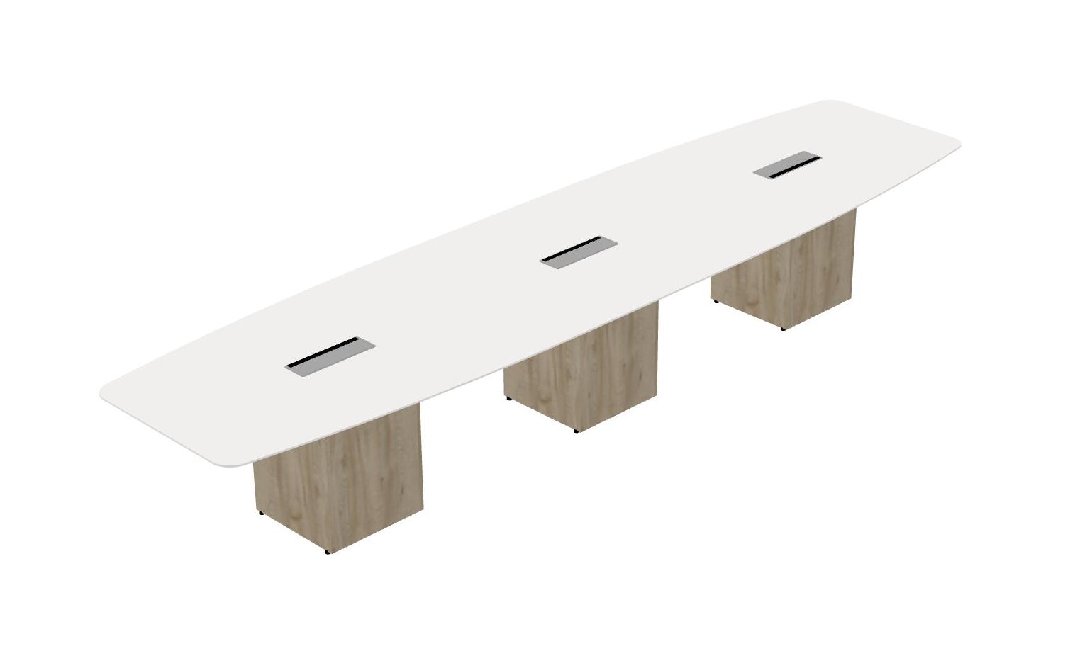 Slick White Boat-shaped Meeting Table For 16 Persons