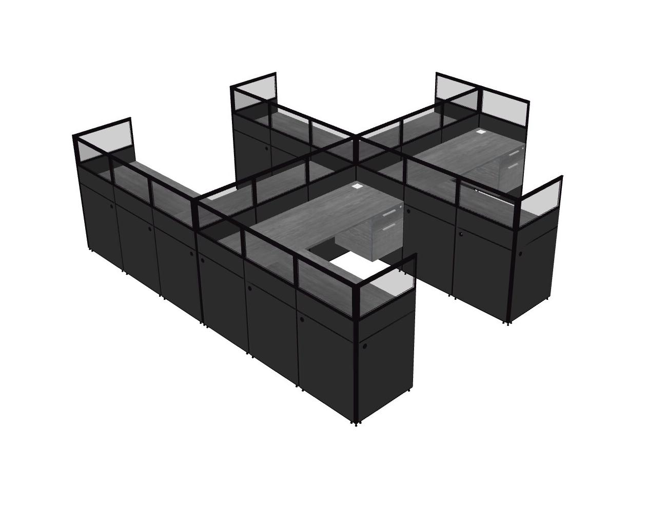 Grey Shared L-Shaped Office Cubicle Panel System With Hanging Drawers For 4 Persons