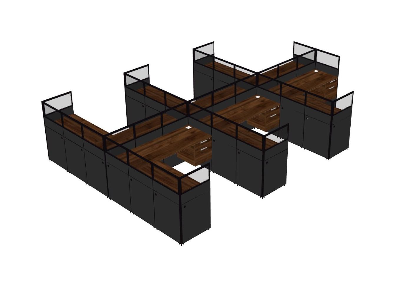 Columbia Walnut Shared L-Shaped Office Cubicle Panel System With Hanging Drawers For 6 Persons