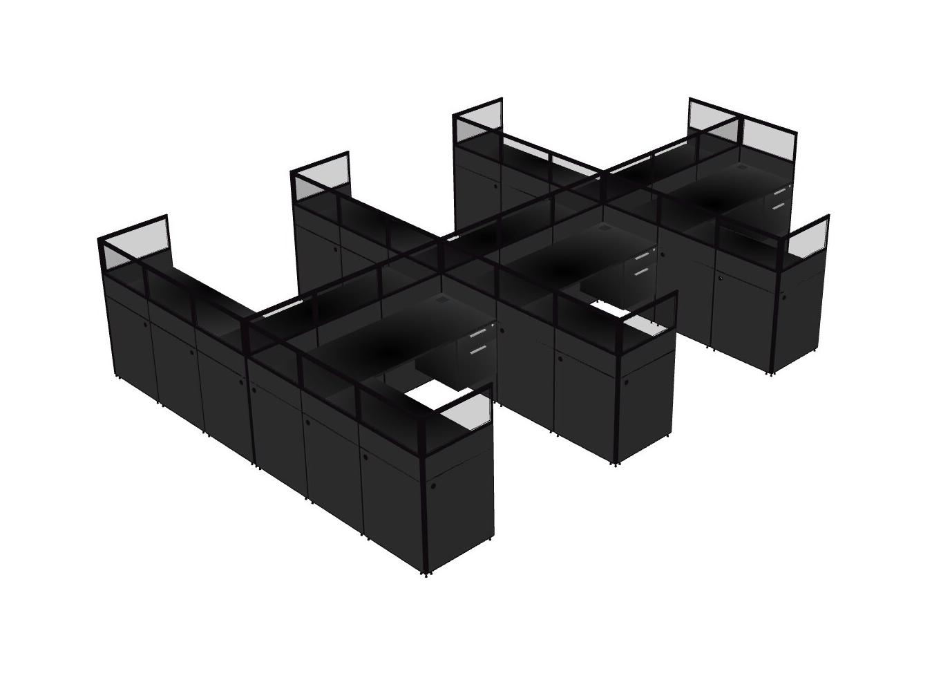 Black Shared L-Shaped Office Cubicle Panel System With Hanging Drawers For 6 Persons