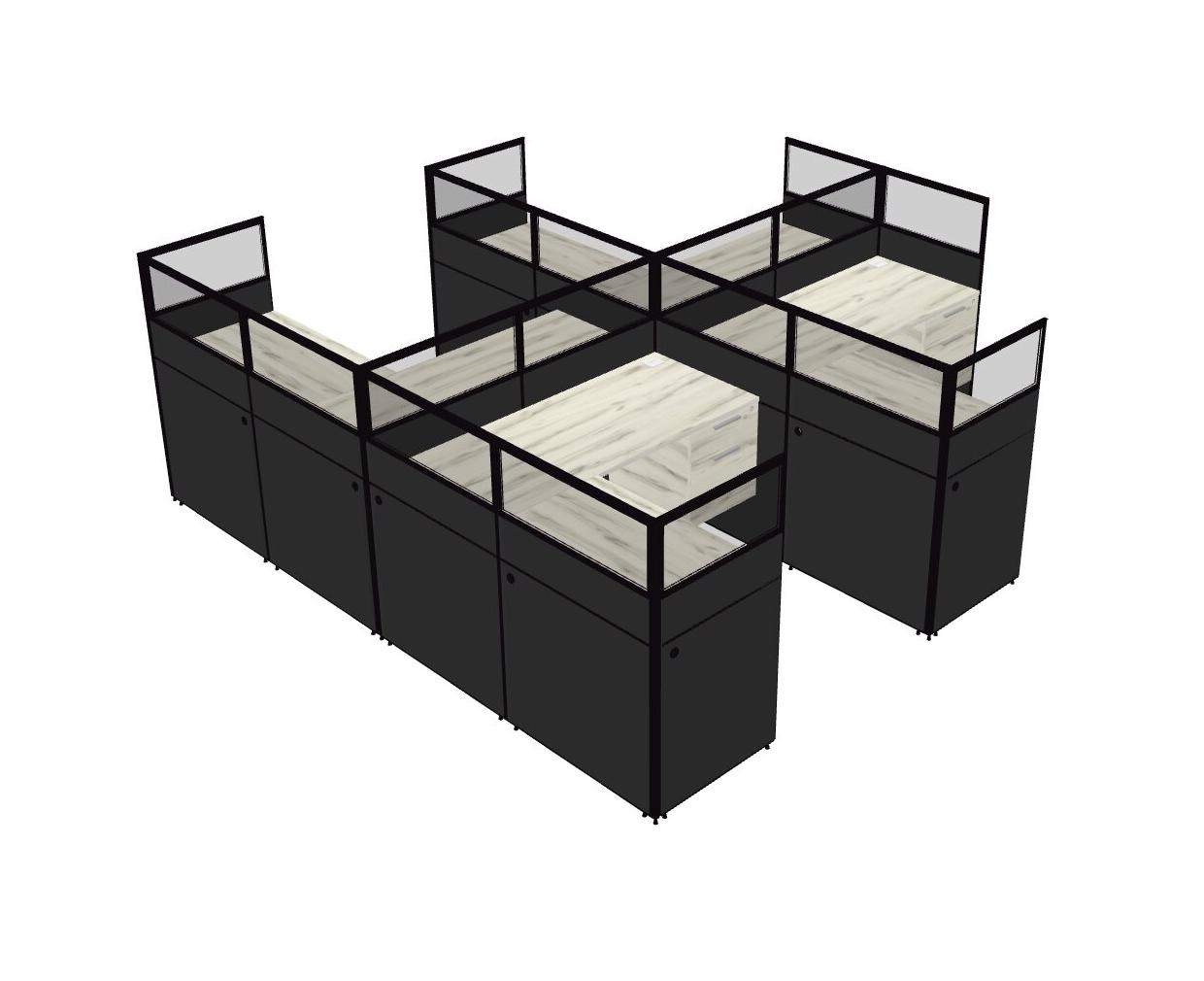 Heinne Holz Shared L-Shaped Office Cubicle Panel System With Hanging Drawers For 4 Persons