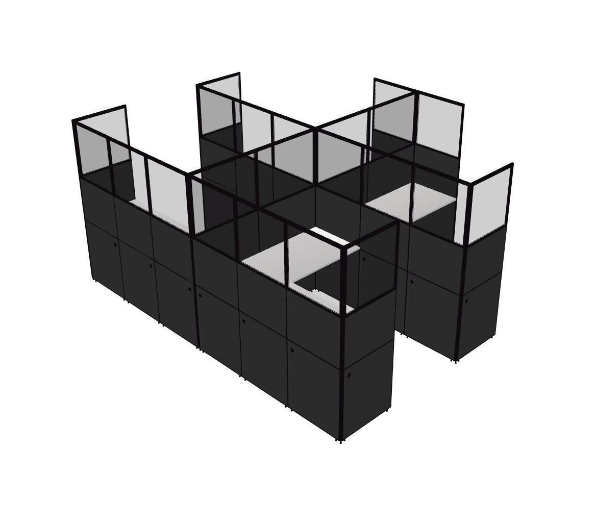 White Shared L-Shaped Office Cubicle Panel System For 4 Persons