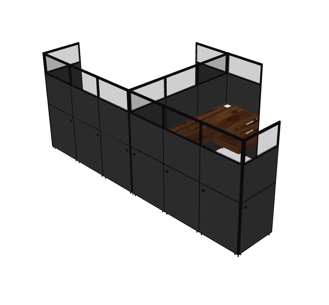 Columbia Walnut Shared L-Shaped Office Cubicle Panel System With Hanging Drawers For 2 Persons