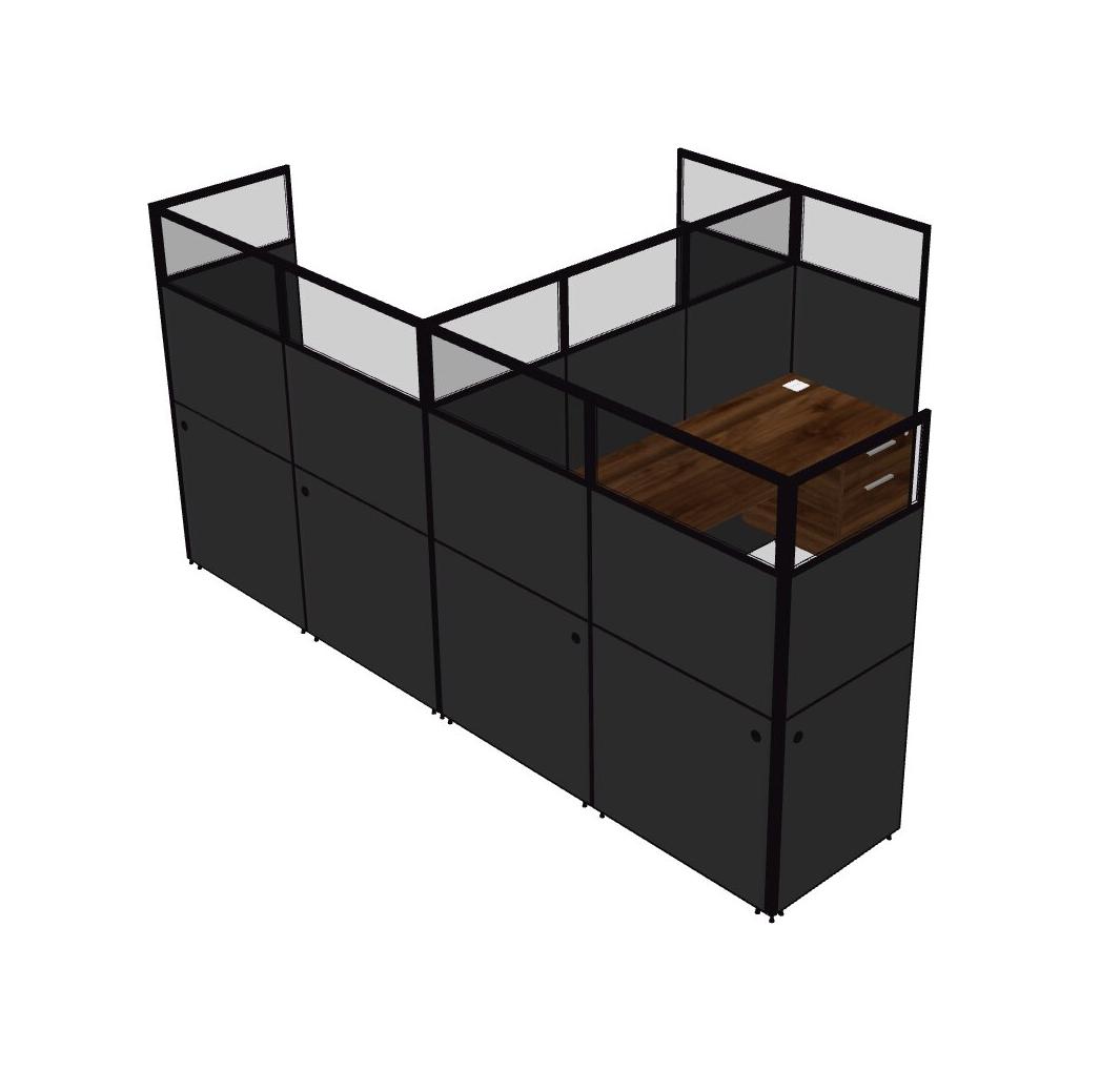 Columbia Walnut Shared L-Shaped Office Cubicle Panel System With Hanging Drawers For 2 Persons