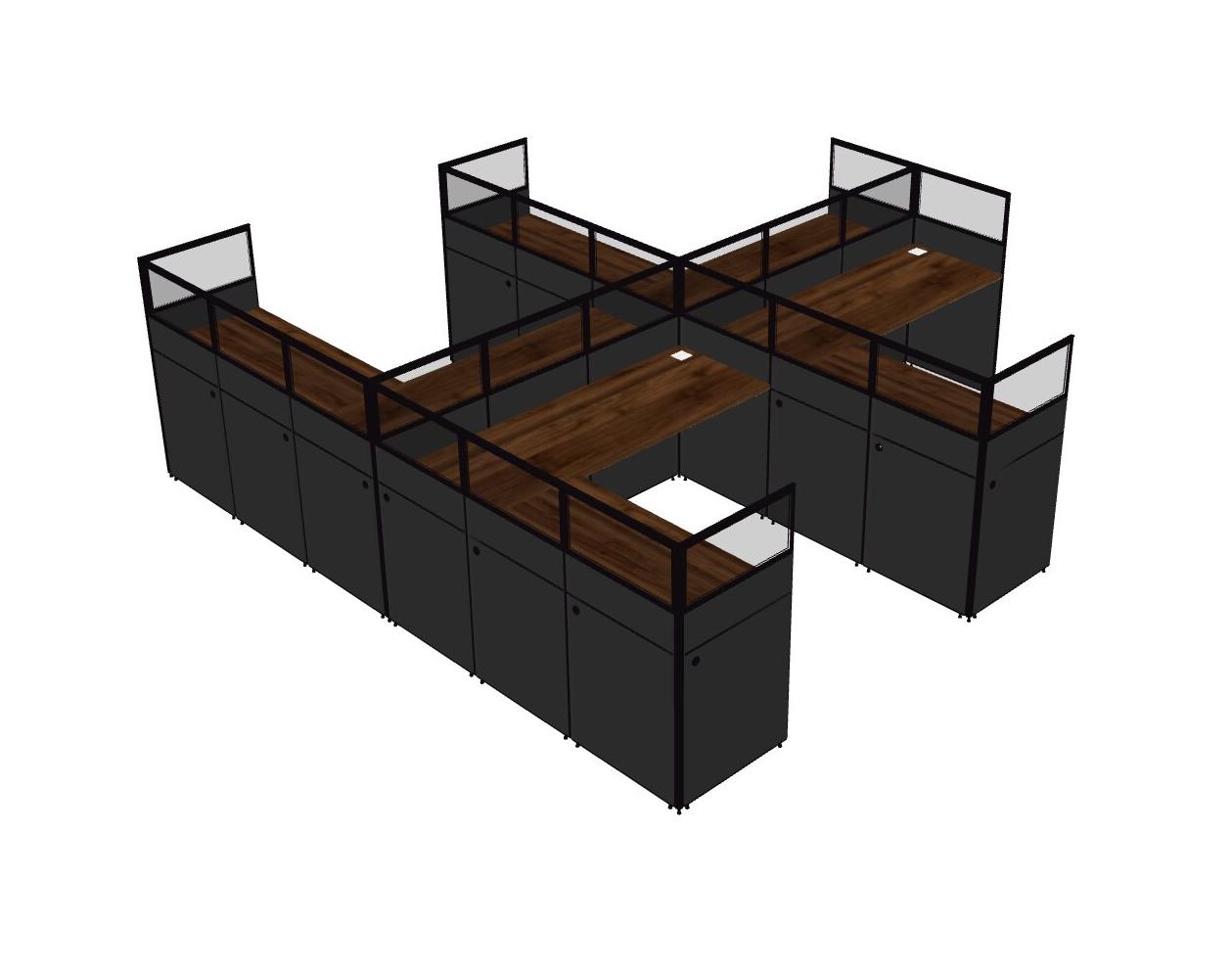 Columbia Walnut Shared L-Shaped Office Cubicle Panel System For 4 Persons