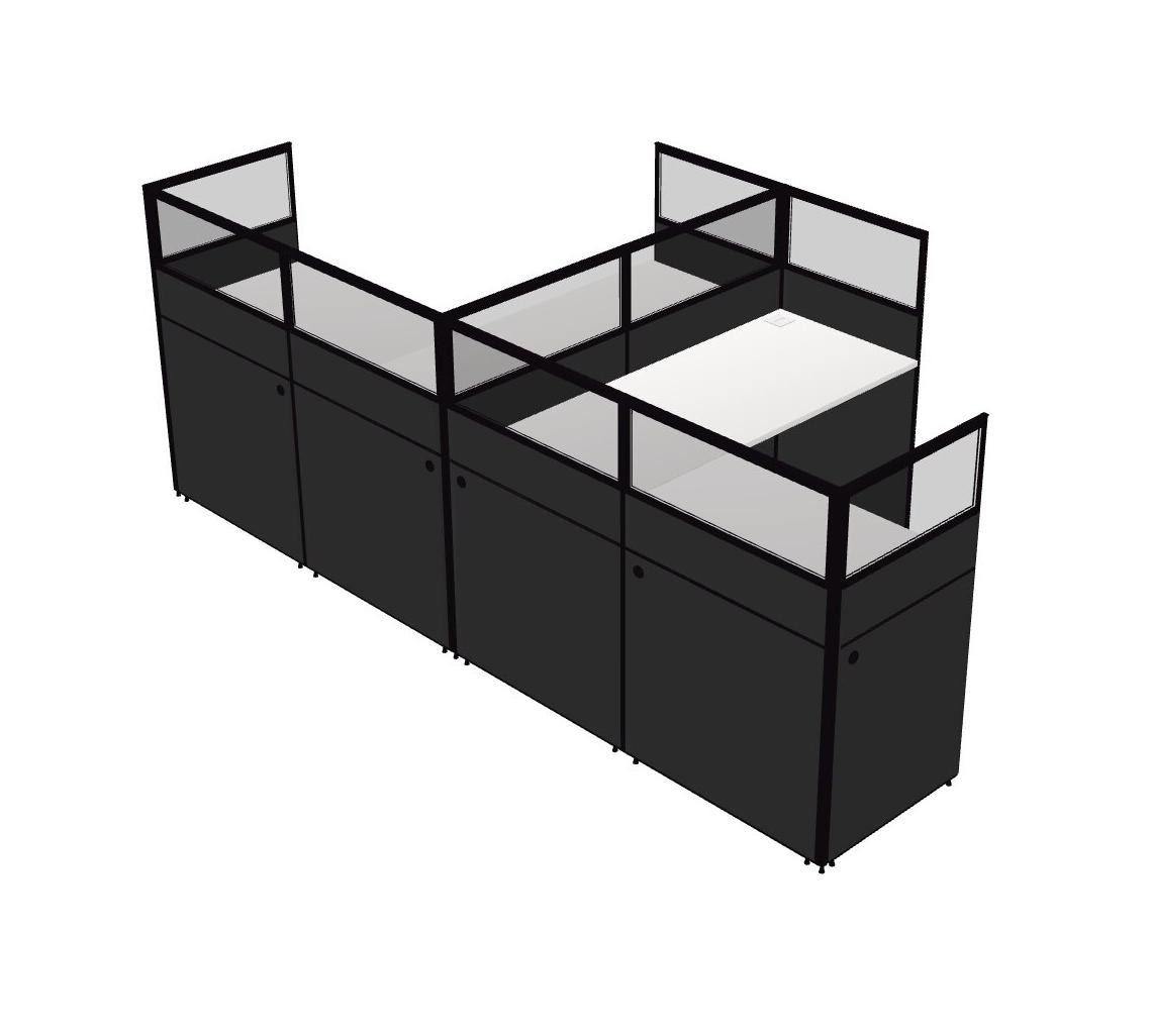 White Shared L-Shaped Office Cubicle Panel System For 2 Persons