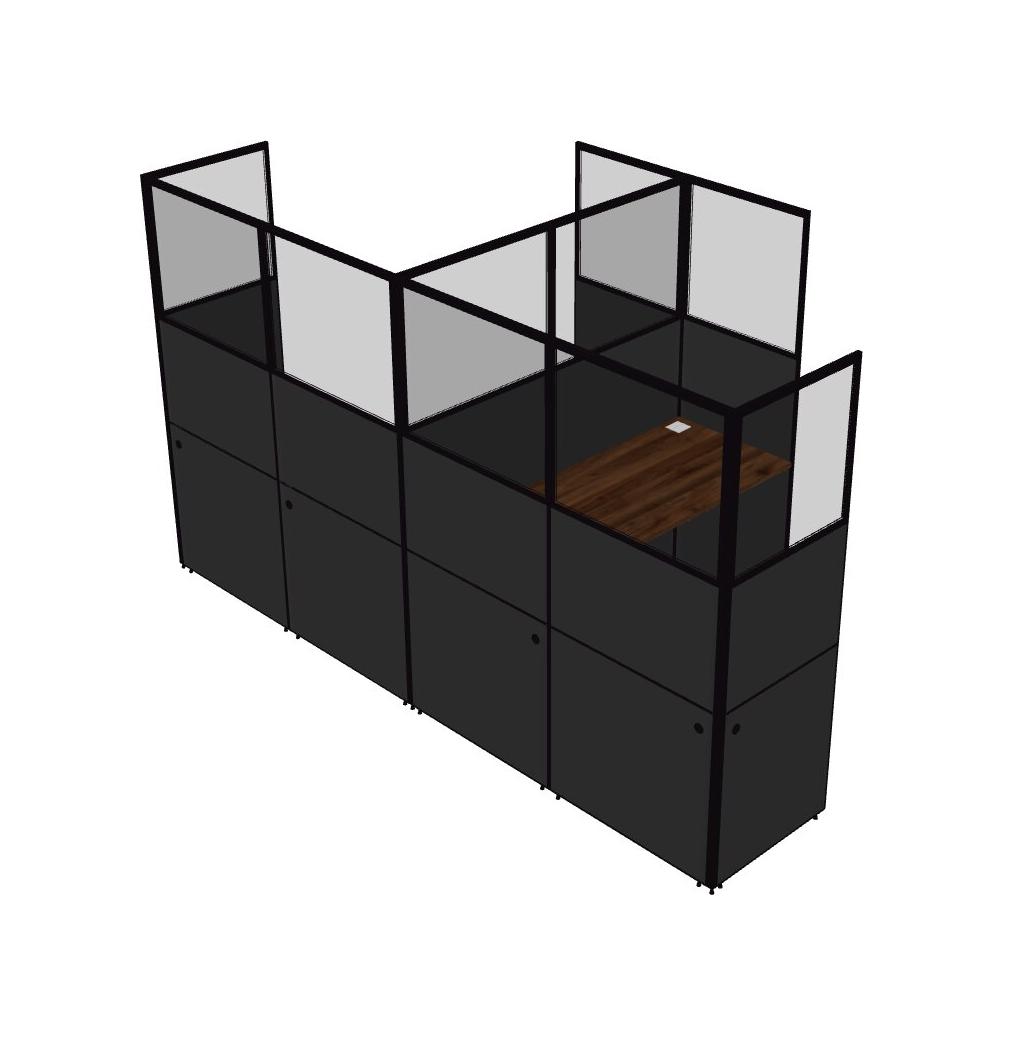 Columbia Walnut Shared L-Shaped Office Cubicle Panel System For 2 Persons