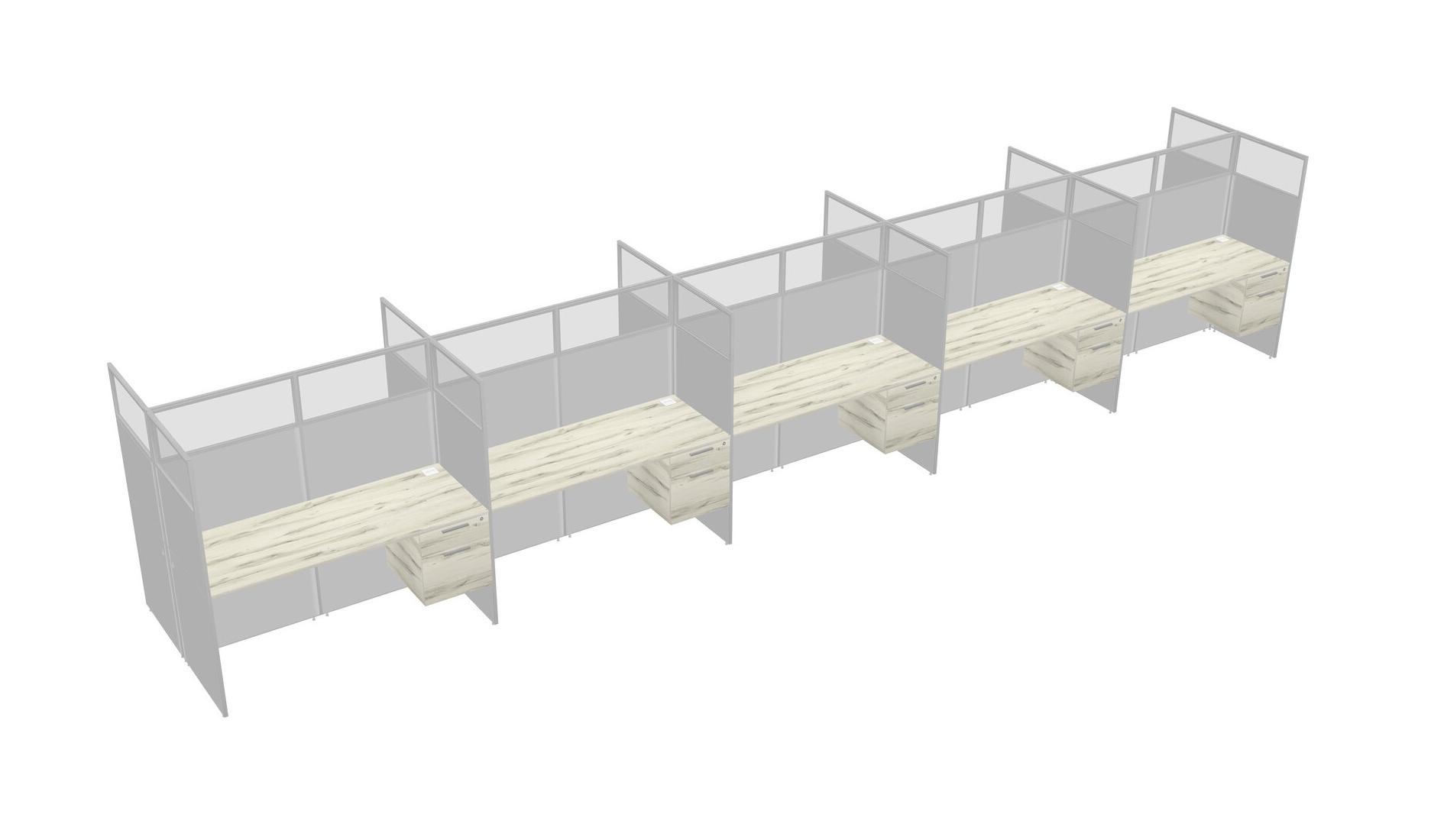 Heinne Holz Shared Rectangular Office Cubicle Panel System With Hanging Drawers For 10 Persons