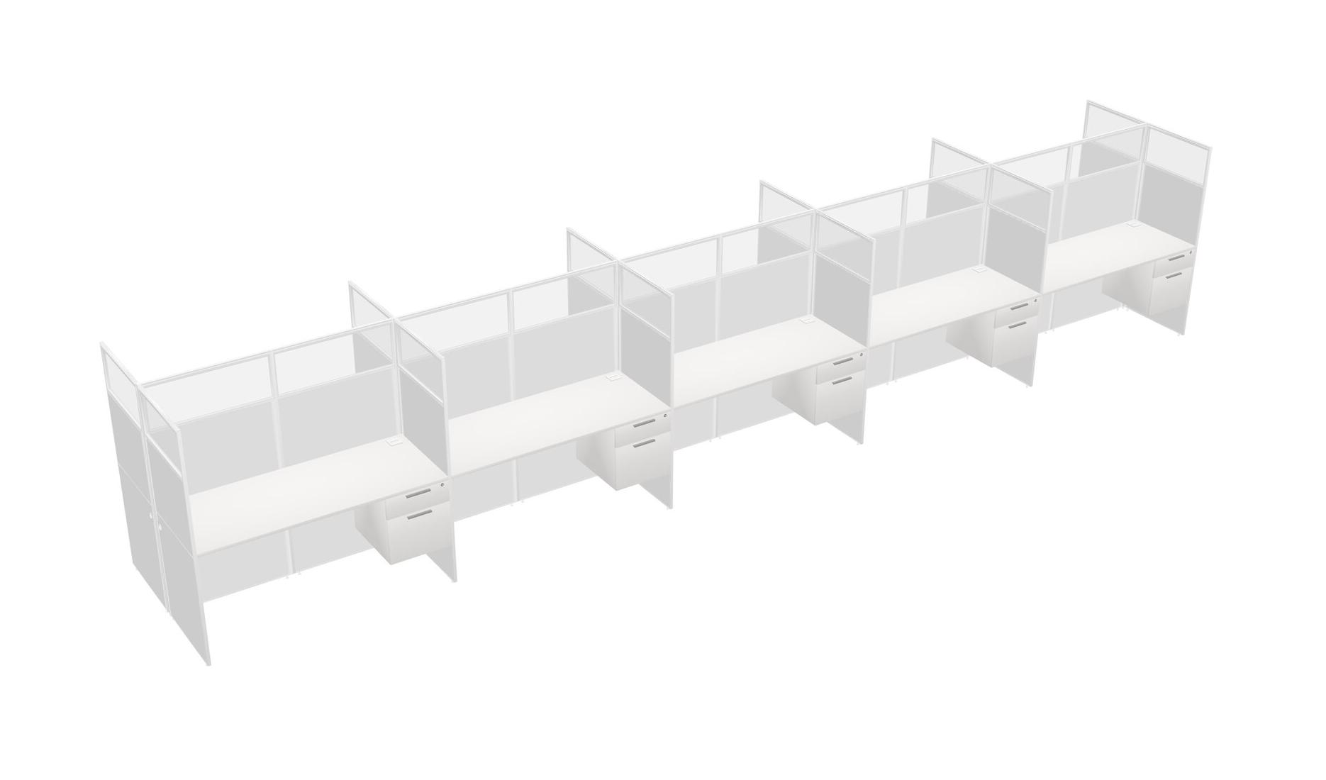 White Shared Rectangular Office Cubicle Panel System With Hanging Drawers For 10 Persons