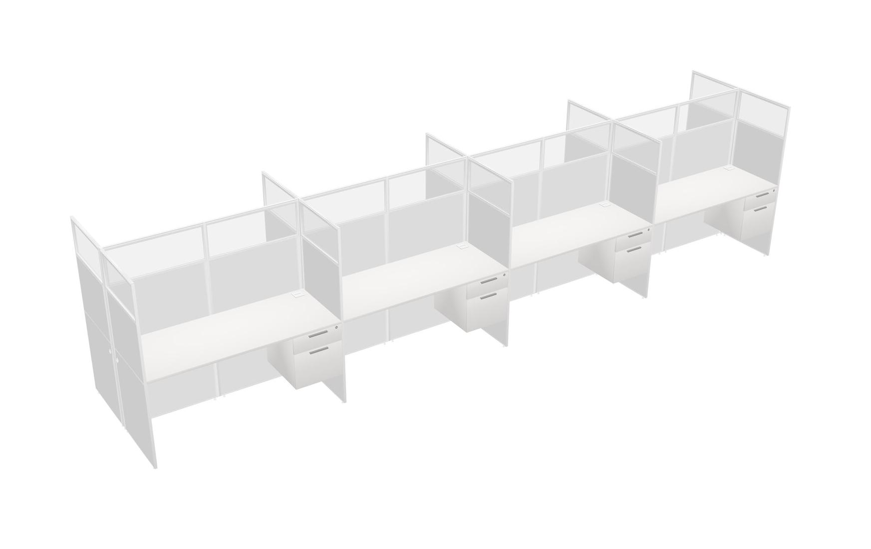 White Shared Rectangular Office Cubicle Panel System With Hanging Drawers For 8 Persons