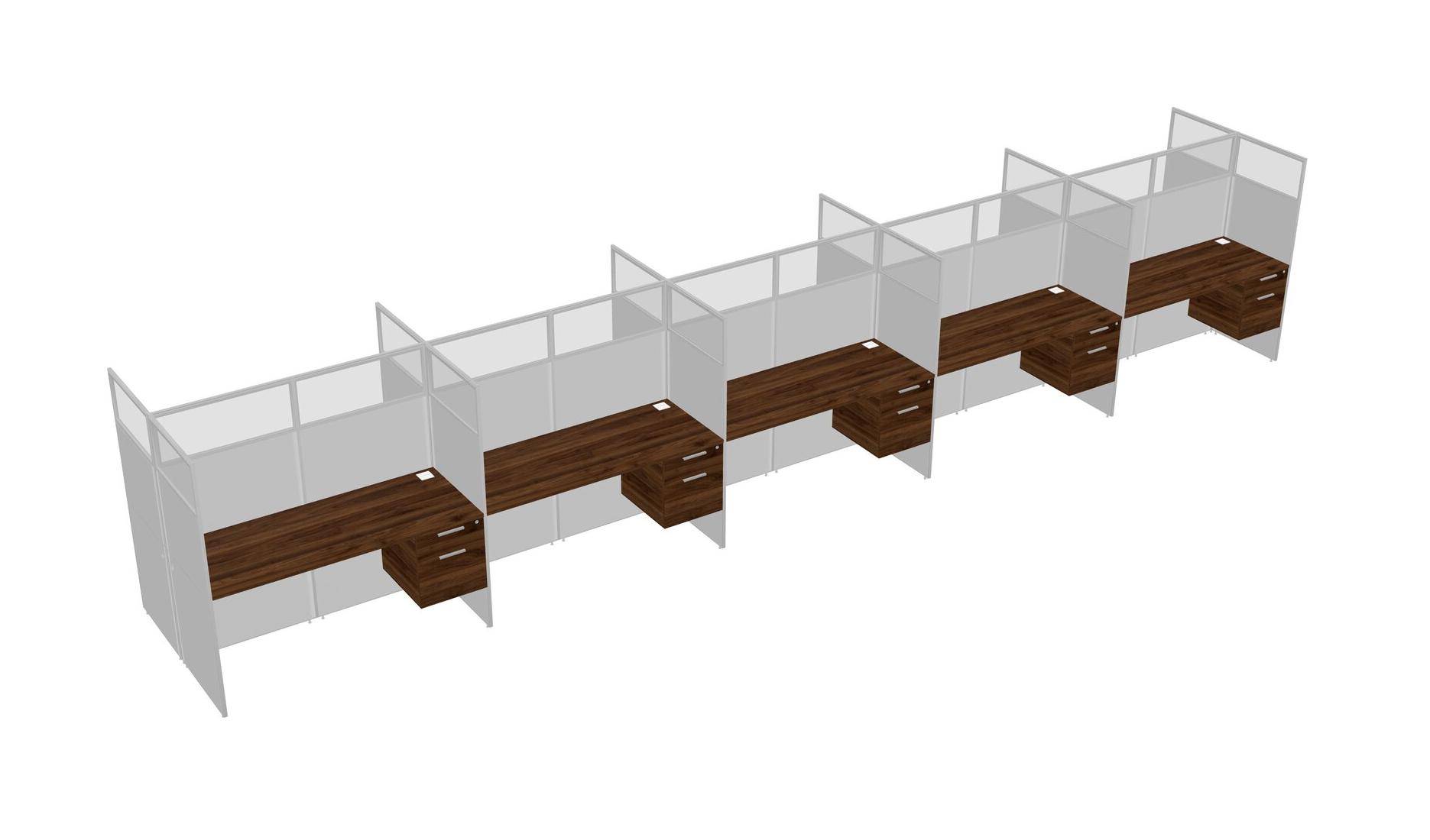 Columbia Walnut Shared Rectangular Office Cubicle Panel System With Hanging Drawers For 10 Persons