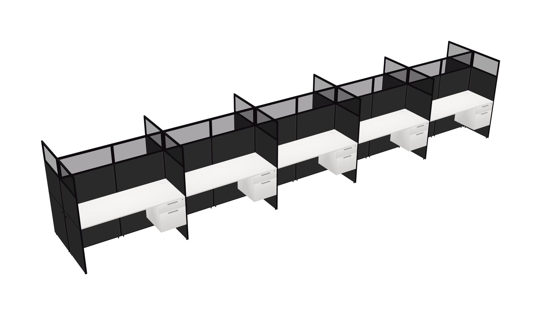 White Shared Rectangular Office Cubicle Panel System With Hanging Drawers For 10 Persons