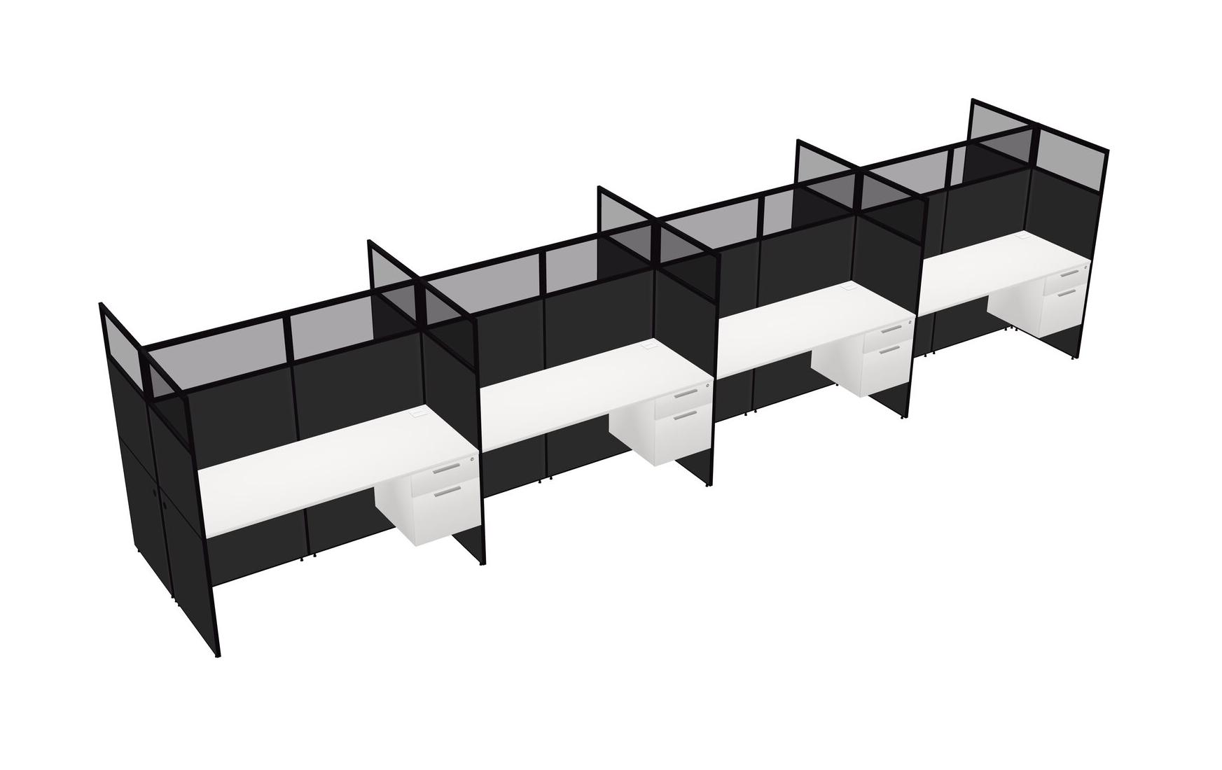White Shared Rectangular Office Cubicle Panel System With Hanging Drawers For 8 Persons