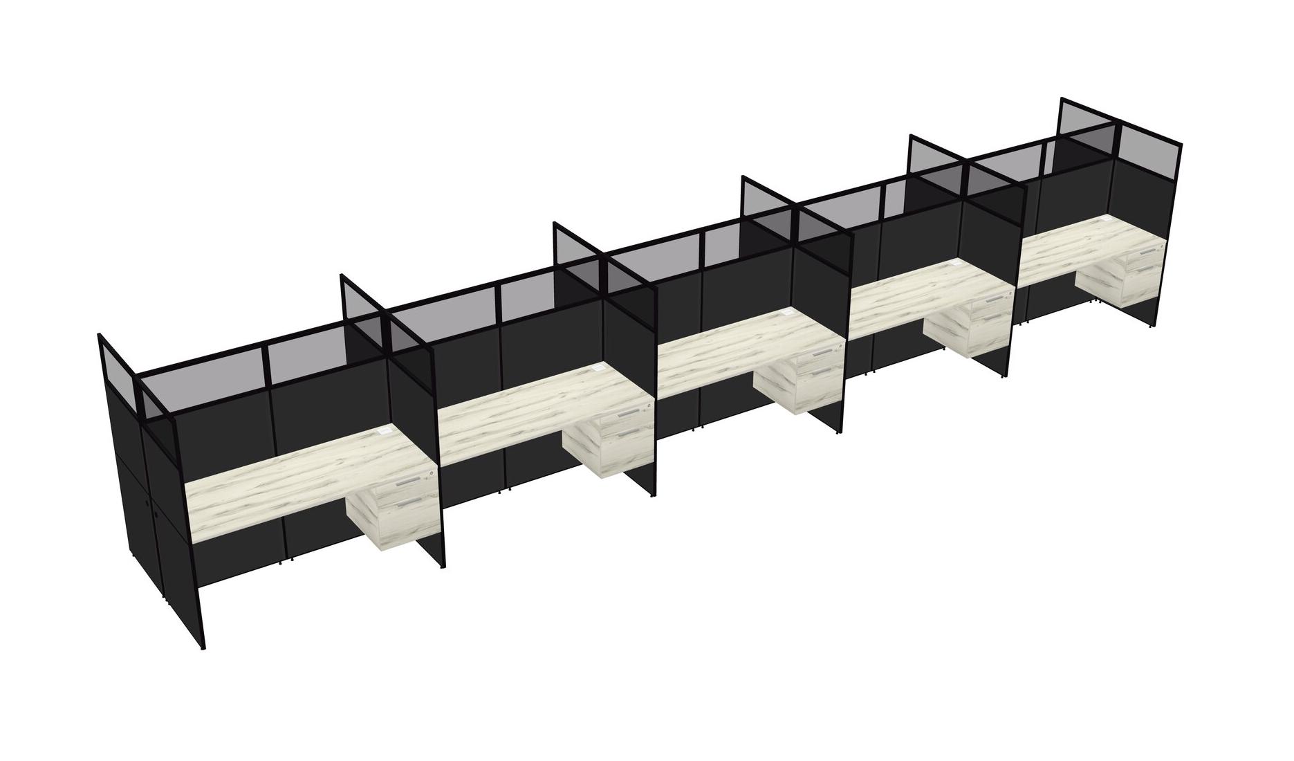 Heinne Holz Shared Rectangular Office Cubicle Panel System With Hanging Drawers For 10 Persons