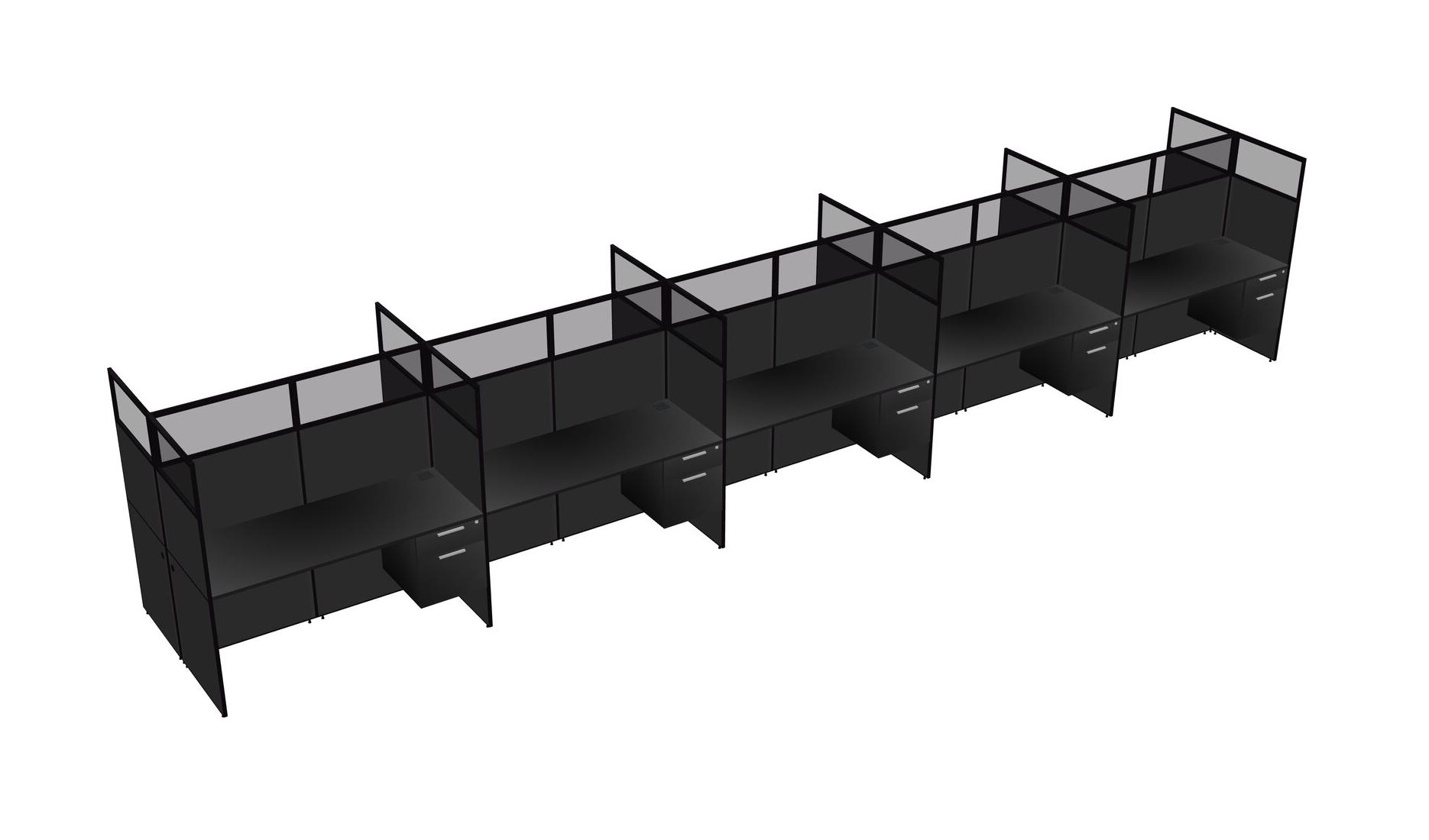 Black Shared Rectangular Office Cubicle Panel System With Hanging Drawers For 10 Persons