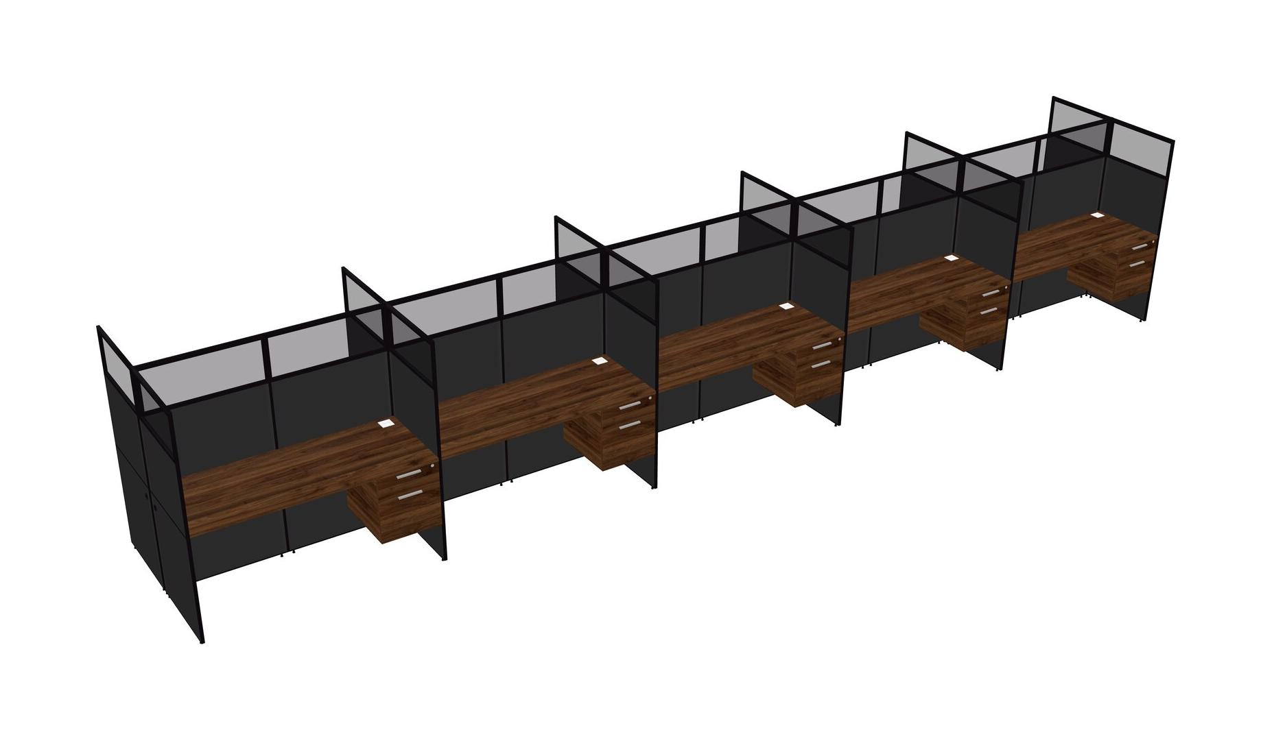 Columbia Walnut Shared Rectangular Office Cubicle Panel System With Hanging Drawers For 10 Persons