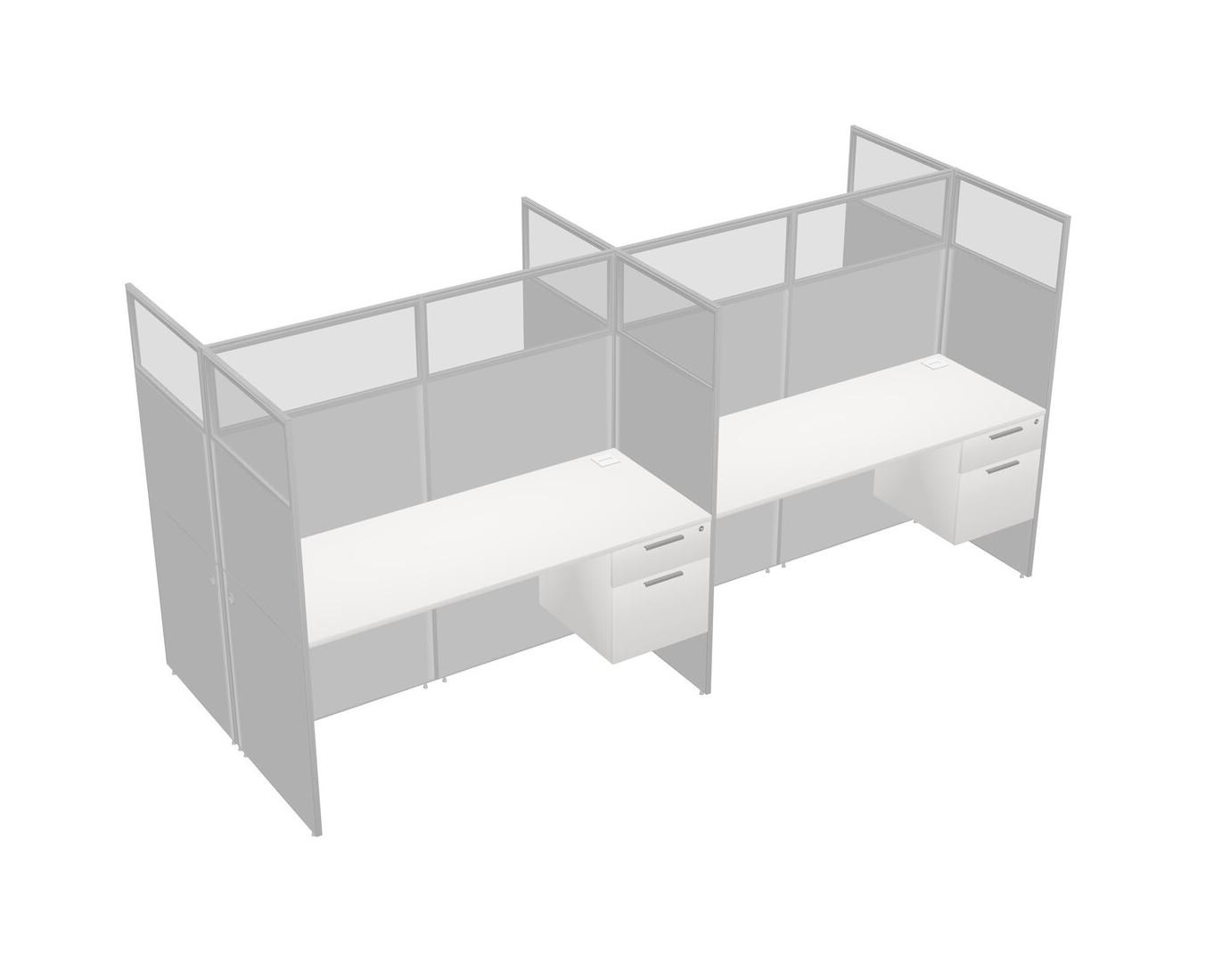 White Shared Rectangular Office Cubicle Panel System With Hanging Drawers For 4 Persons