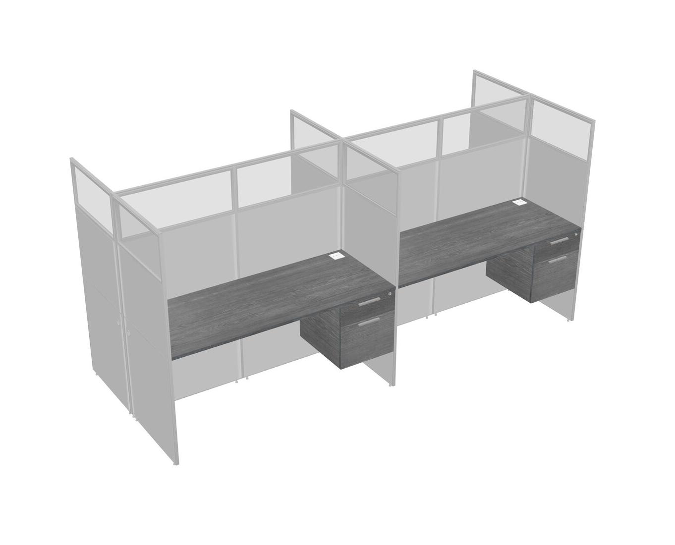 Grey Shared Rectangular Office Cubicle Panel System With Hanging Drawers For 4 Persons