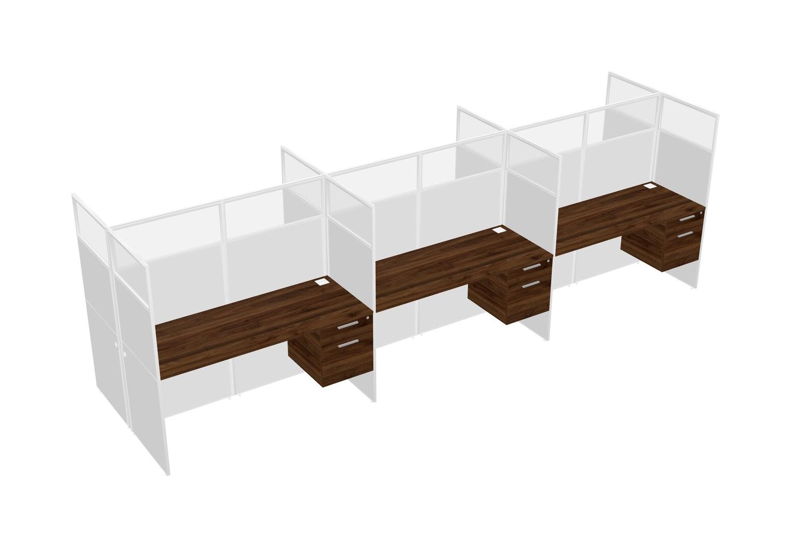 Columbia Walnut Shared Rectangular Office Cubicle Panel System With Hanging Drawers For 6 Persons