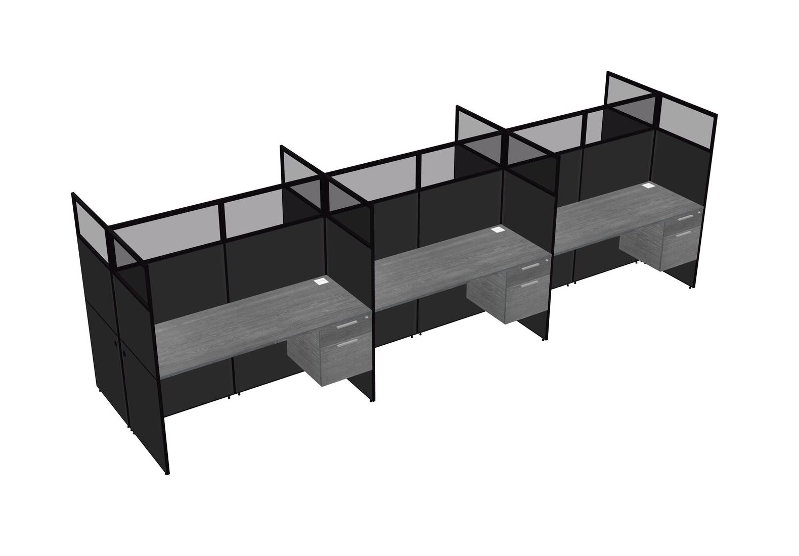 Grey Shared Rectangular Office Cubicle Panel System With Hanging Drawers For 6 Persons