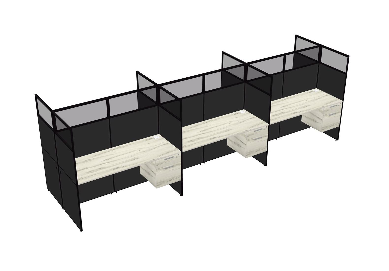 Heinne Holz Shared Rectangular Office Cubicle Panel System With Hanging Drawers For 6 Persons