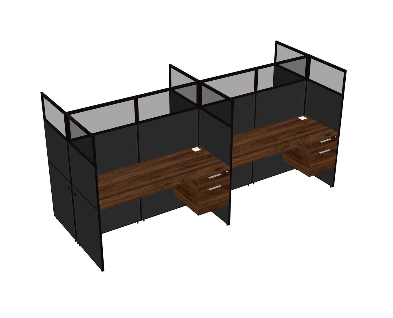 Columbia Walnut Shared Rectangular Office Cubicle Panel System With Hanging Drawers For 4 Persons