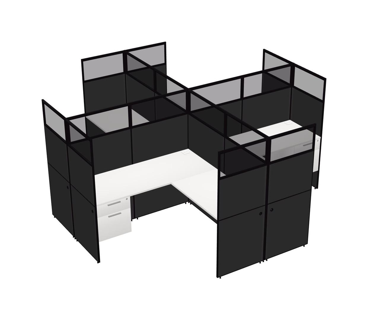 White L-shaped Quad Office Cubicles Hanging Drawers