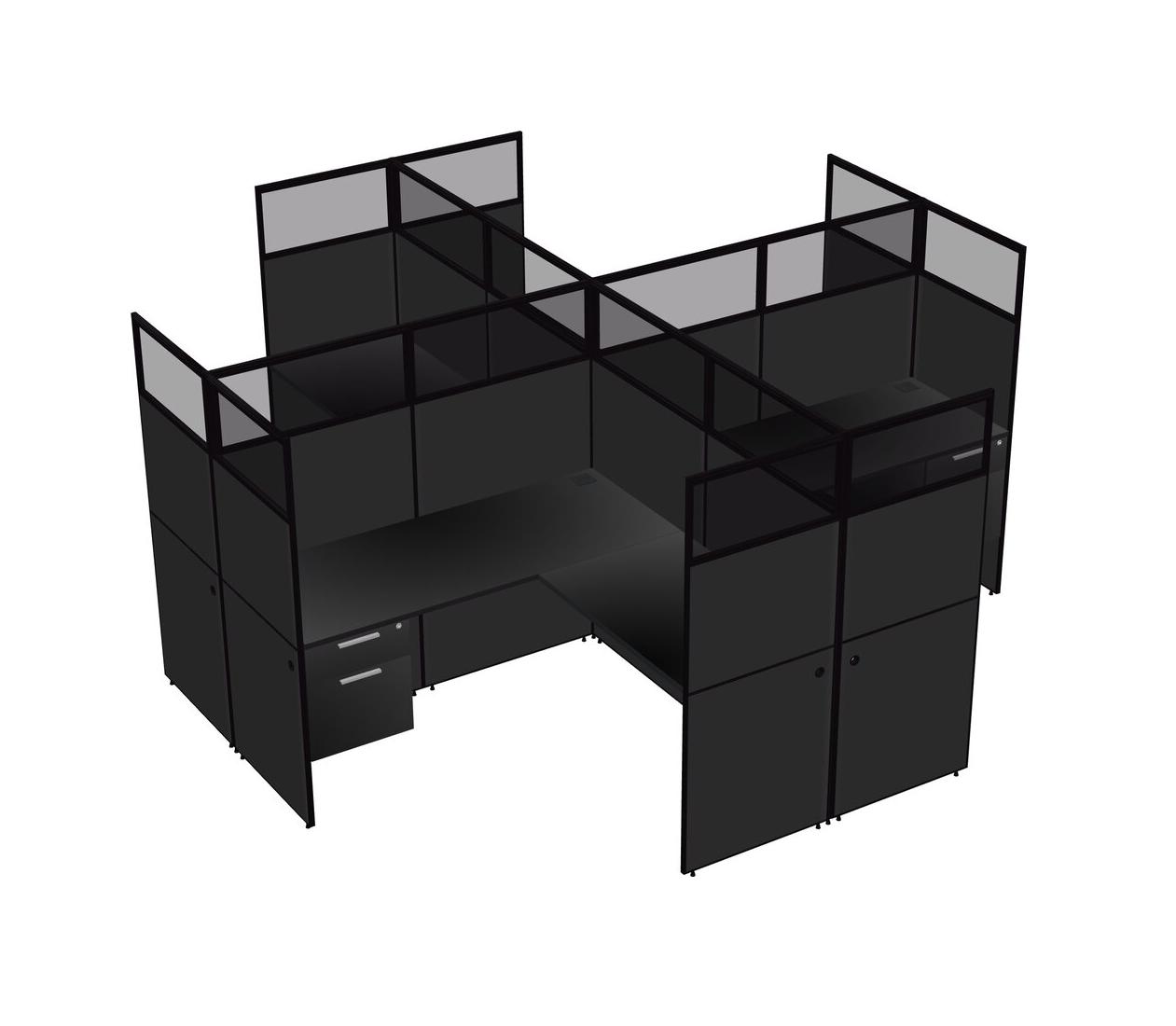 Black L-shaped Quad Office Cubicles Hanging Drawers