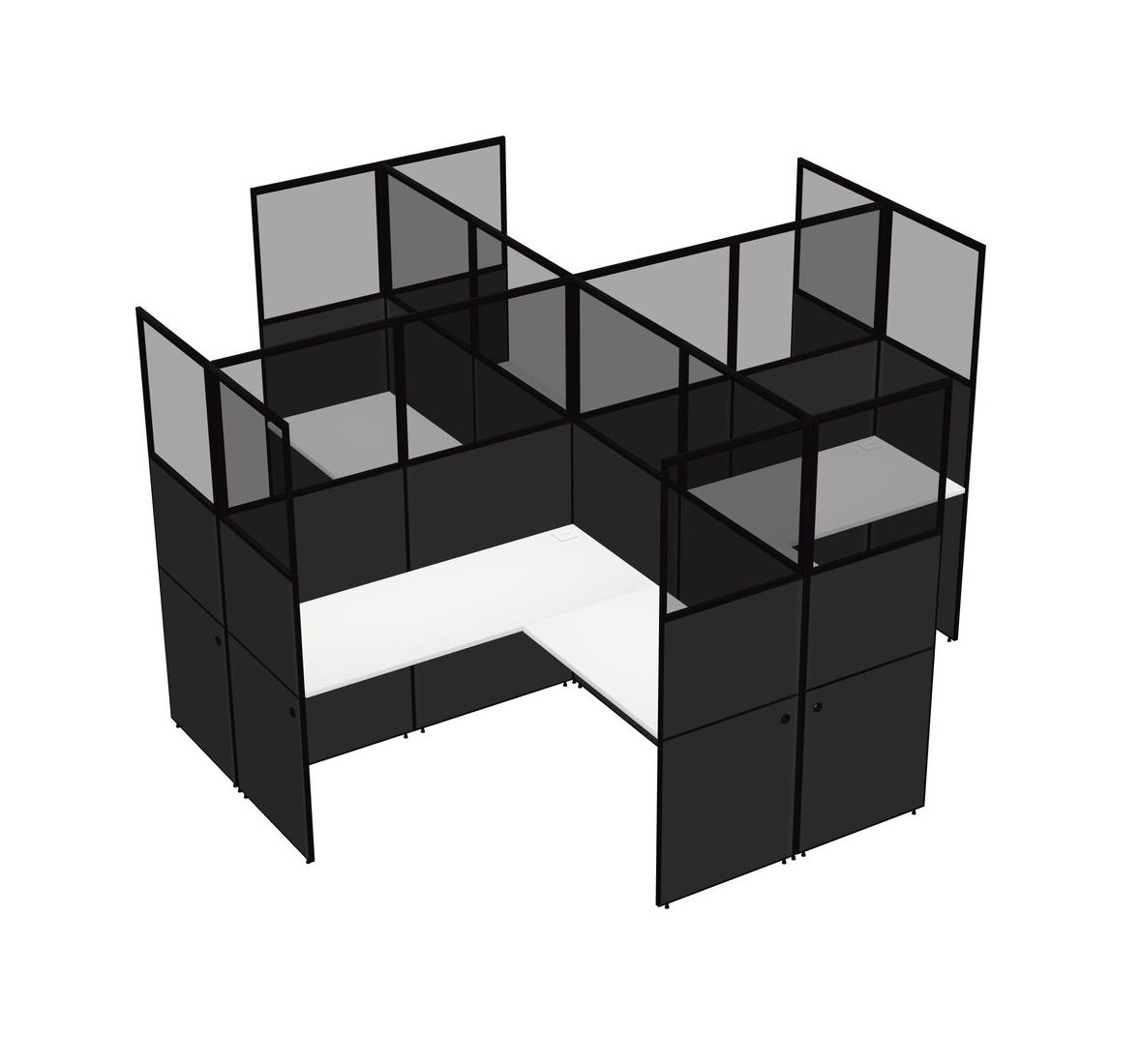 White L-shaped Quad Office Cubicles